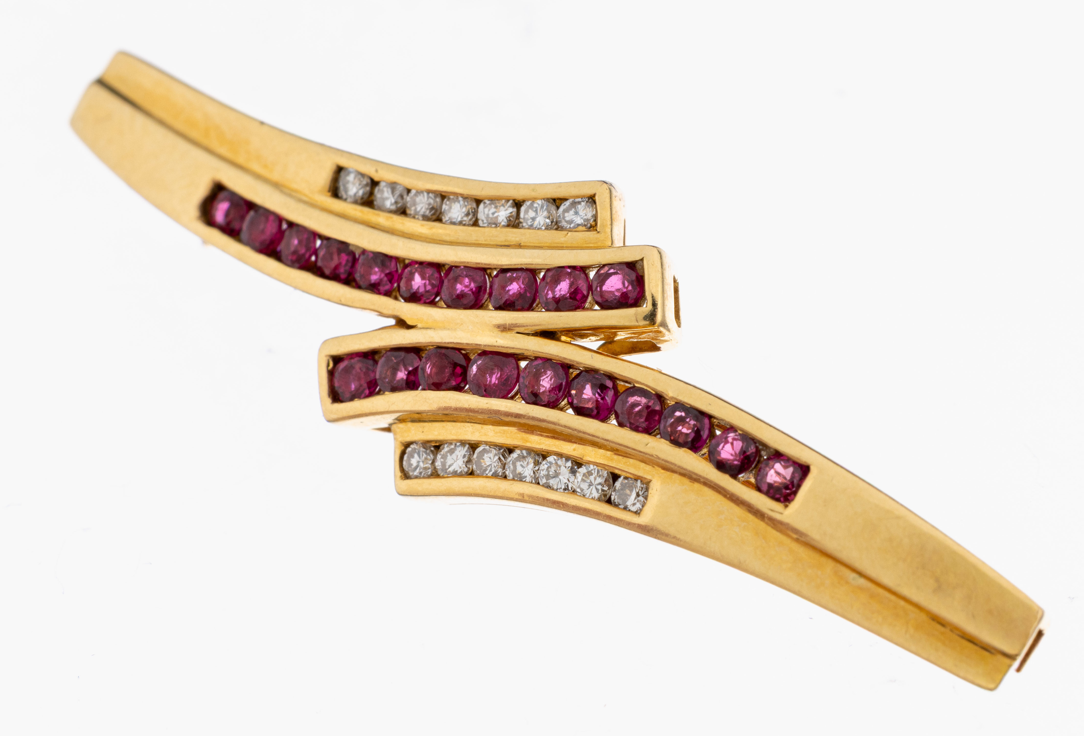 18 kt Gold Rubin-Brillant-Brosche, GG 750/000, 20 rundfacett. Rubine zus. ca. 0.77