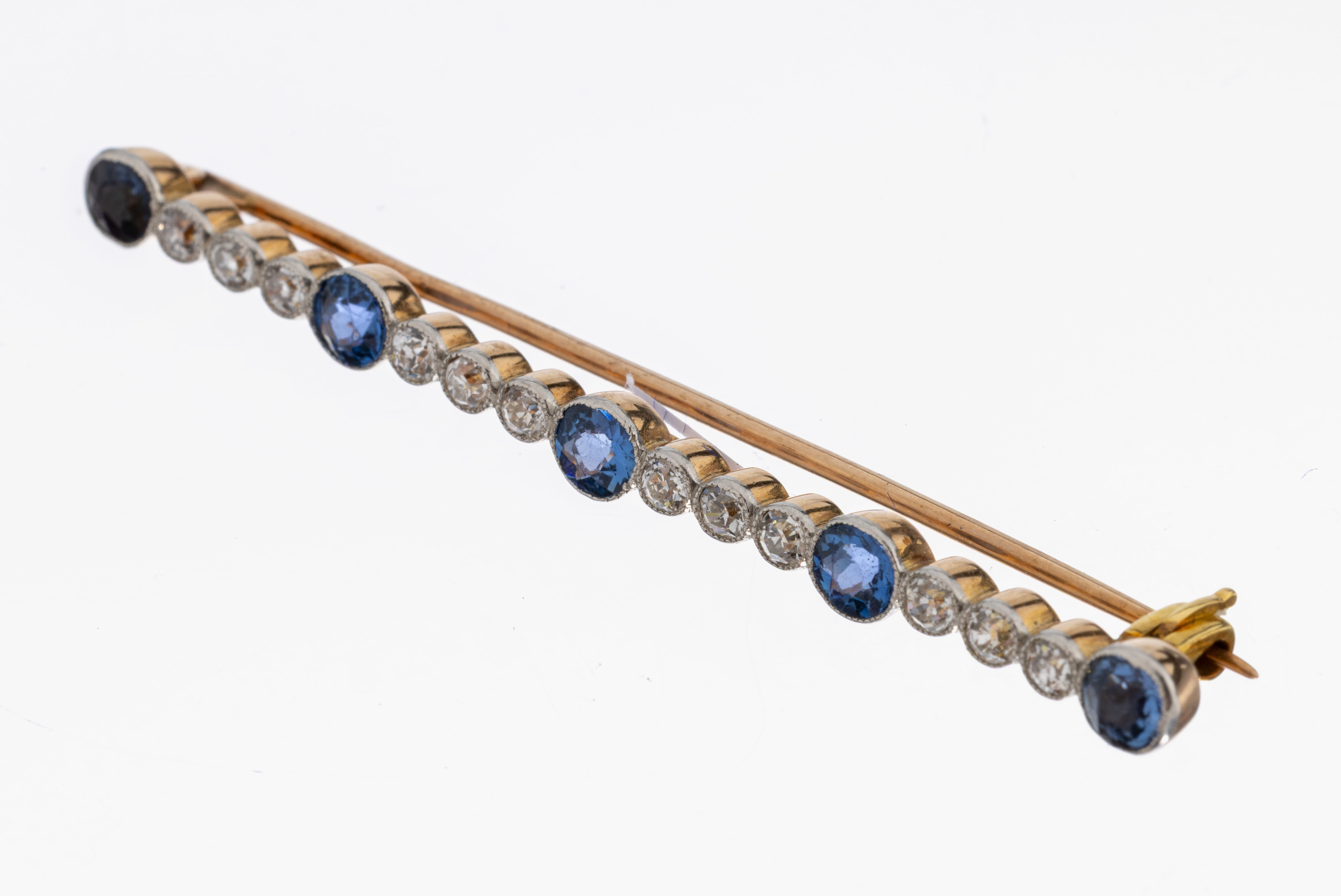 synth. Saphire, 1 Stein wohl ersetzt, 12 Altschliffdiamanten zus. ca. 0.60 ct Weiß/si-