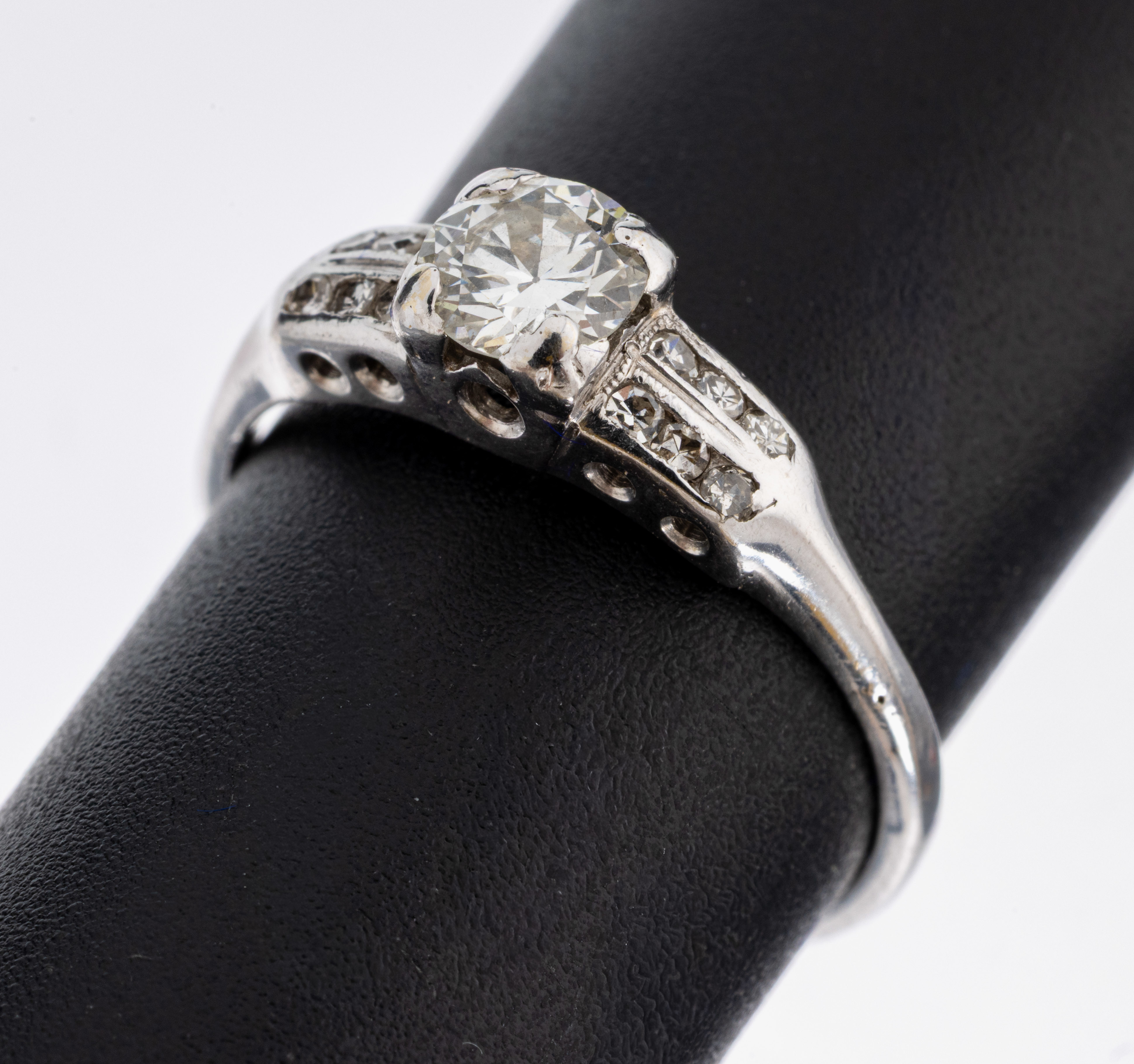 Platin Diamant Ring, 1930er Jahre, 1 Altschliffdiamant und 12 8/8-Diamanten zus.