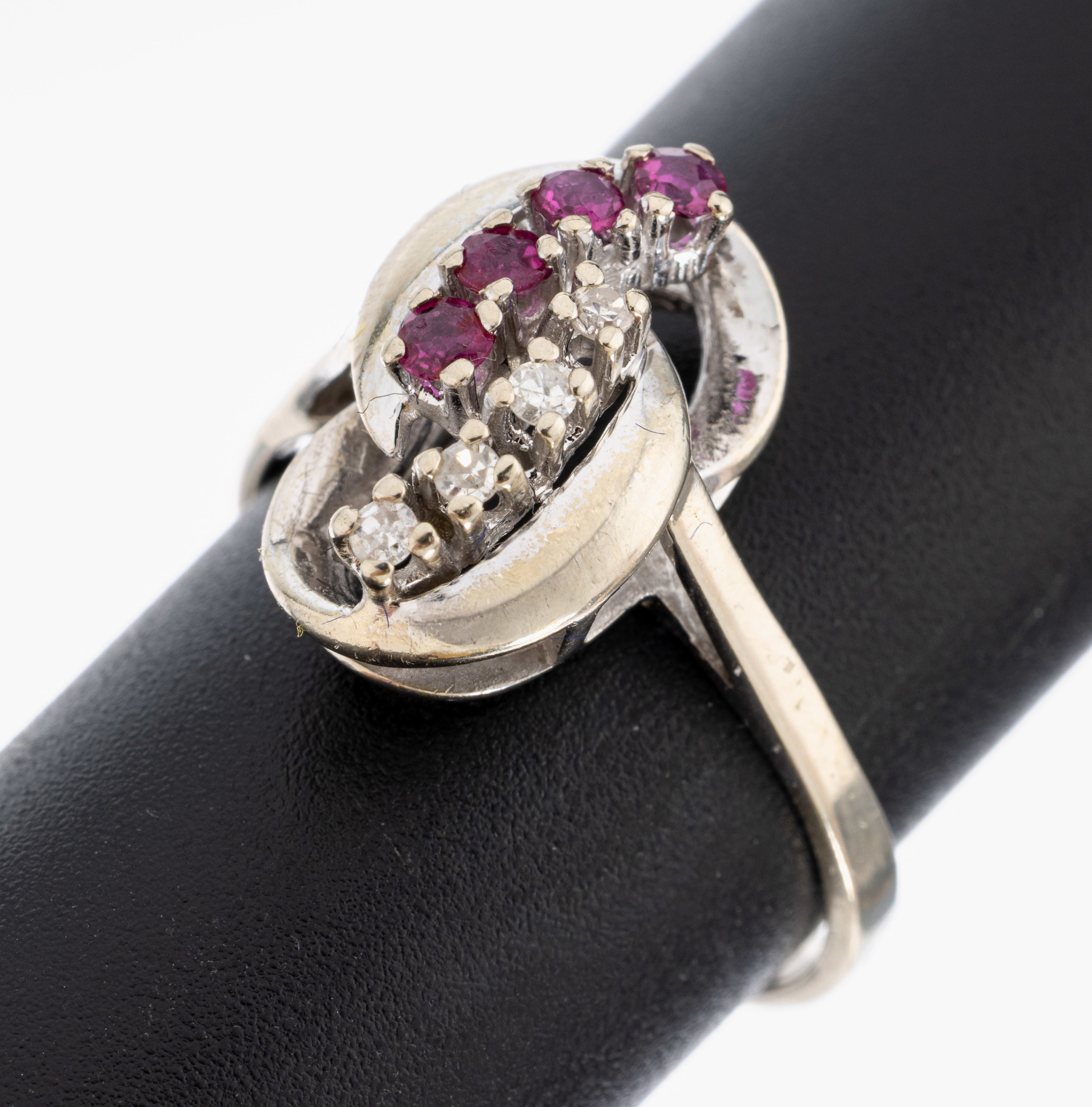 14 kt Gold Rubin-Diamant-Ring, WG 585/000 4 rundfacett. Rubine zus. ca. 0.10 ct,