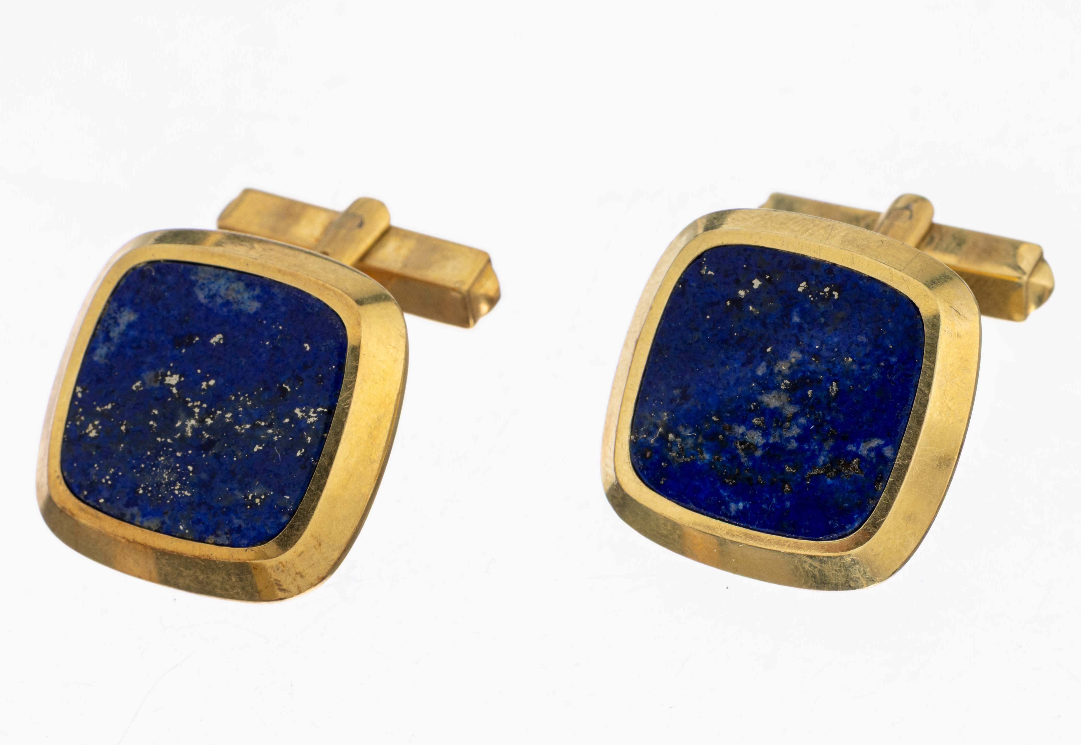 Paar 14 kt Gold Lapislazuli-Manschettenknöpfe, GG 585/000, Lapislazulieinlage mit