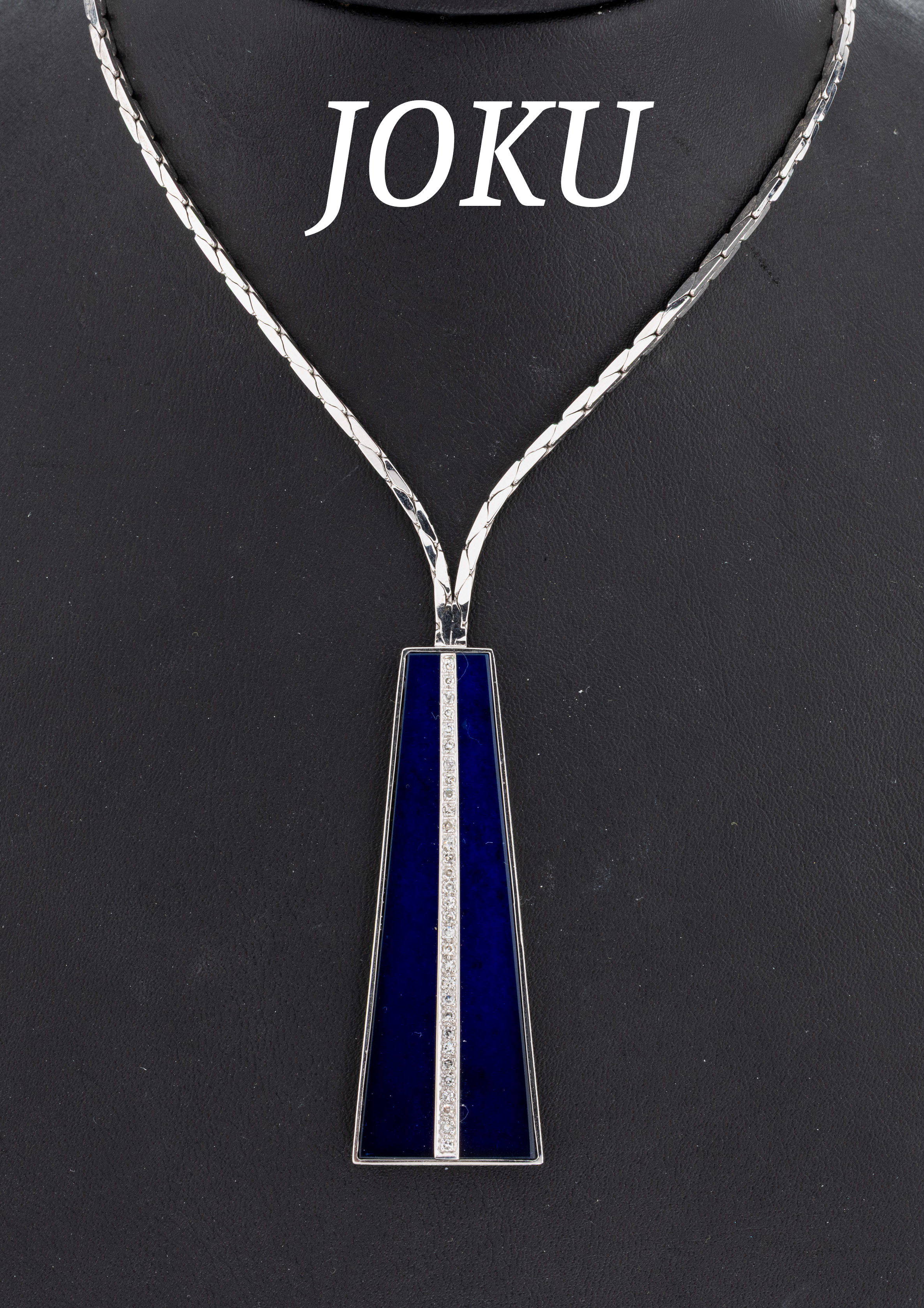 14 kt Gold Lapislazuli-Diamant-Collier, 1970erJahre, WG 585/000, eingeschliffene