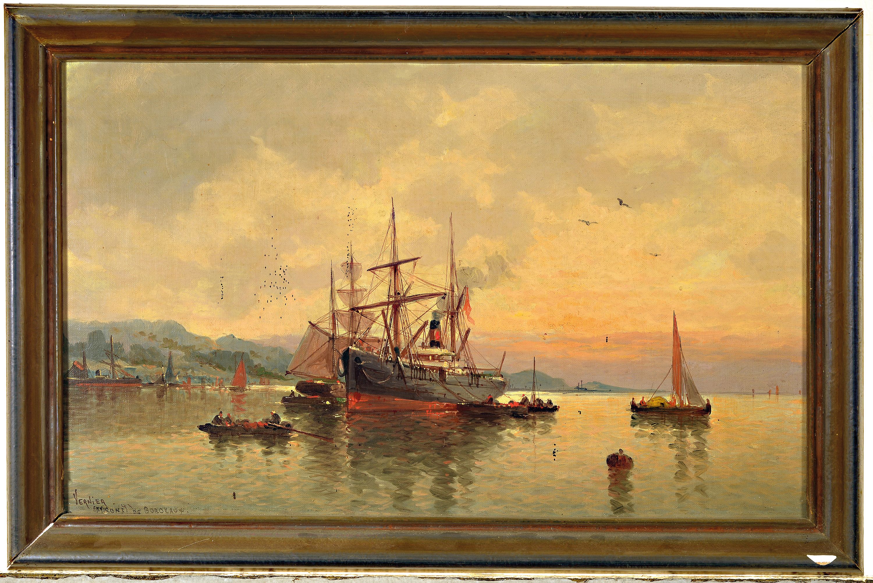 Jules Vernier, 1862-1937, französisch, Hafenszene bei Bordeaux, links unten signiert