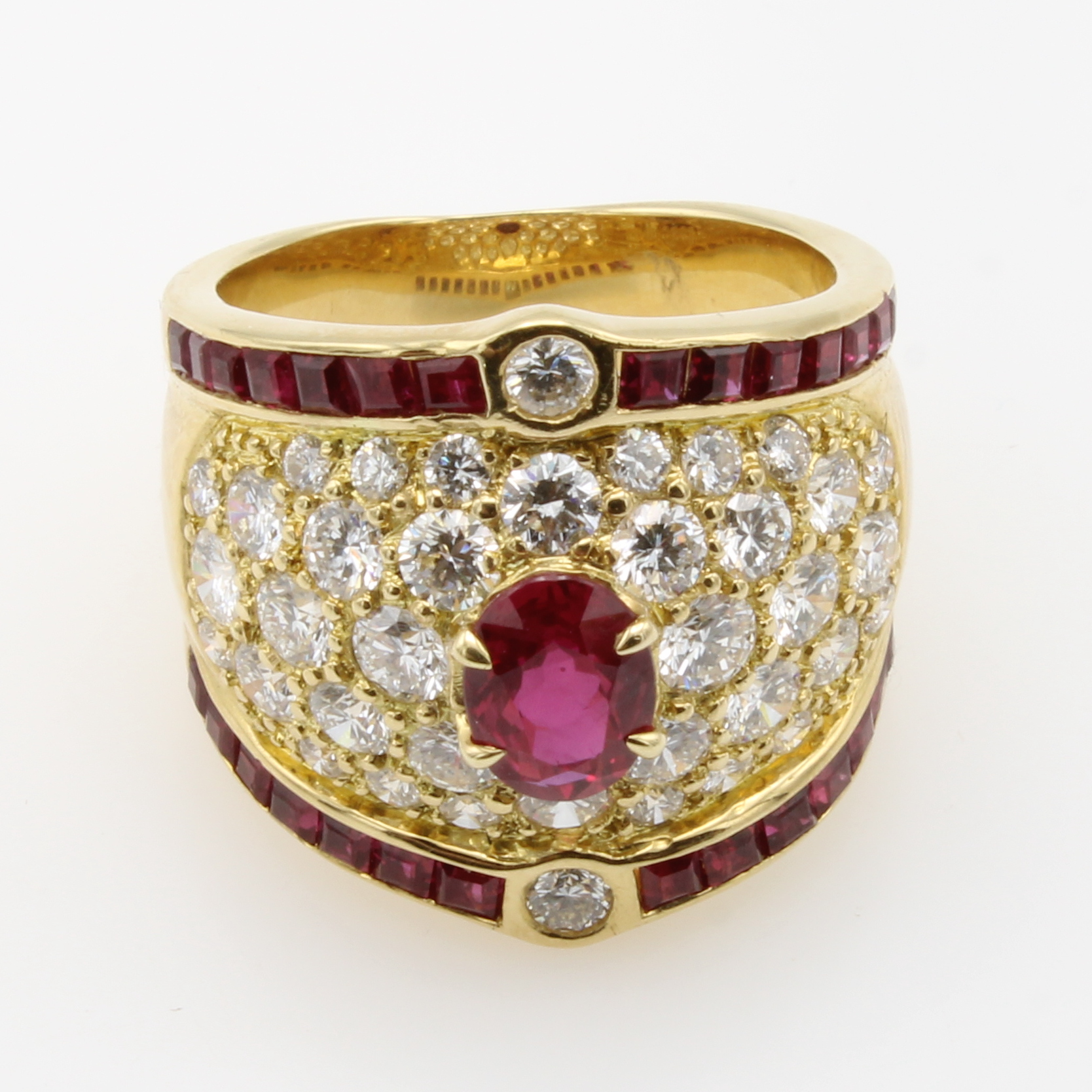 Ring mit Rubinen und Brillanten, GG 750/000,1 ovaler Rubin (Thailand) ca. 1.04 ct,