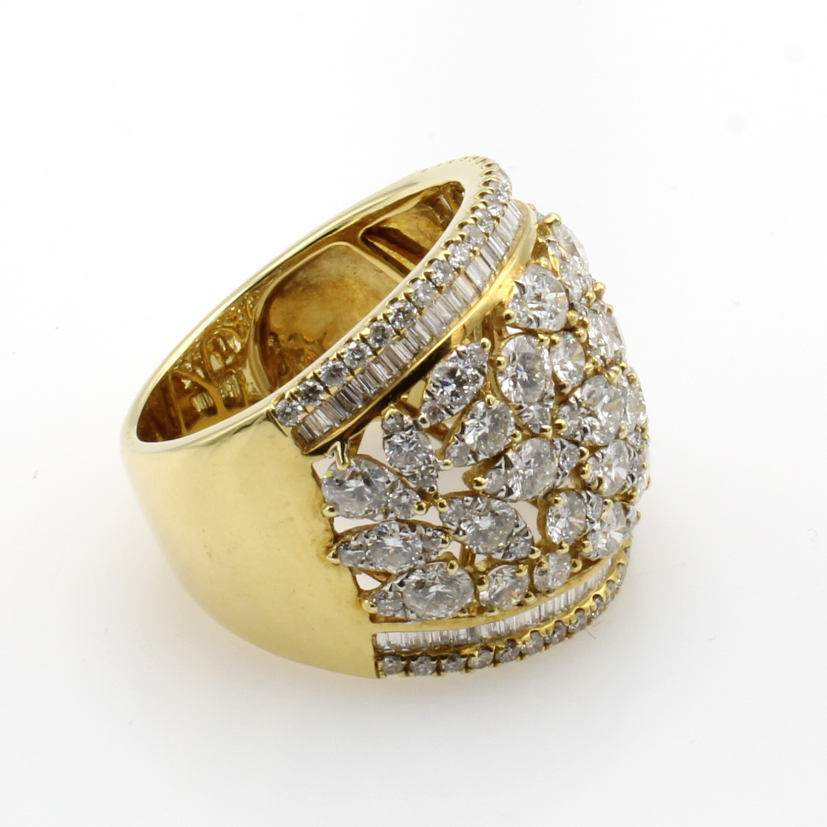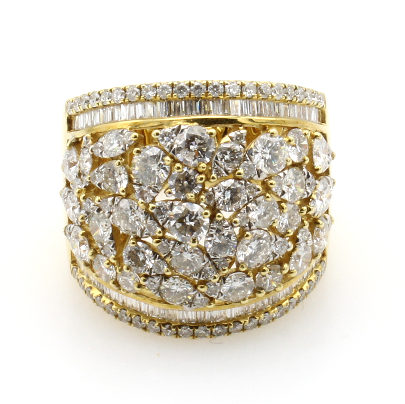 Ring mit Brillanten und Diamanten, GG 750/ 000, 112 Brill. u. 70 Diam. zus. ca. 4.348 ct u. 70 Diamantbag. zus. ca. 3.85 ct Weiß/si, RW ca. 57 Schätzpreis: 14800, - EUR