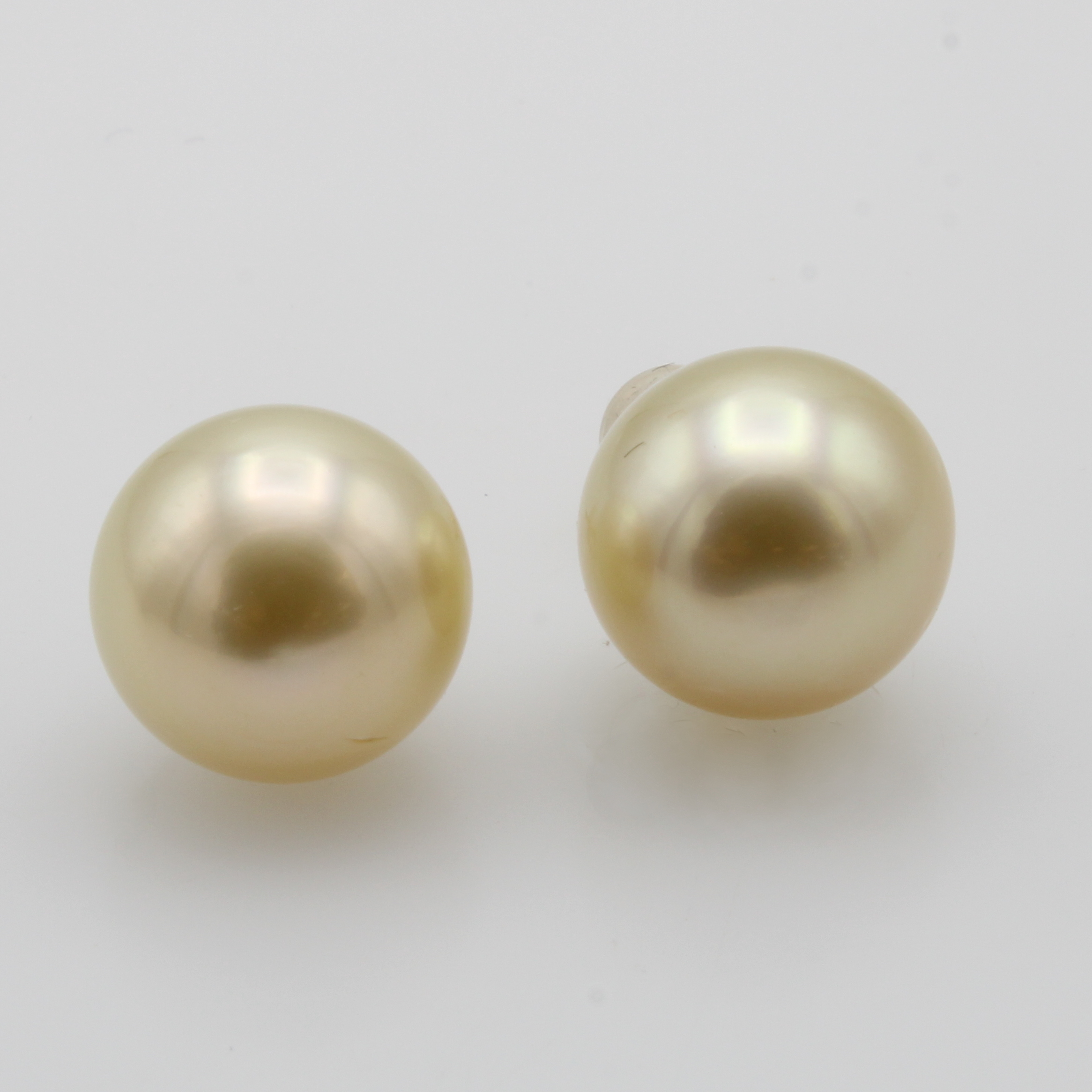 Paar Ohrstecker mit Südseezuchtperlen, GG 750/000, 2 naturfarb., l.champagnerfarb. Perlen, D. ca. 12.5-12.7 mm Schätzpreis: 1300, - EUR