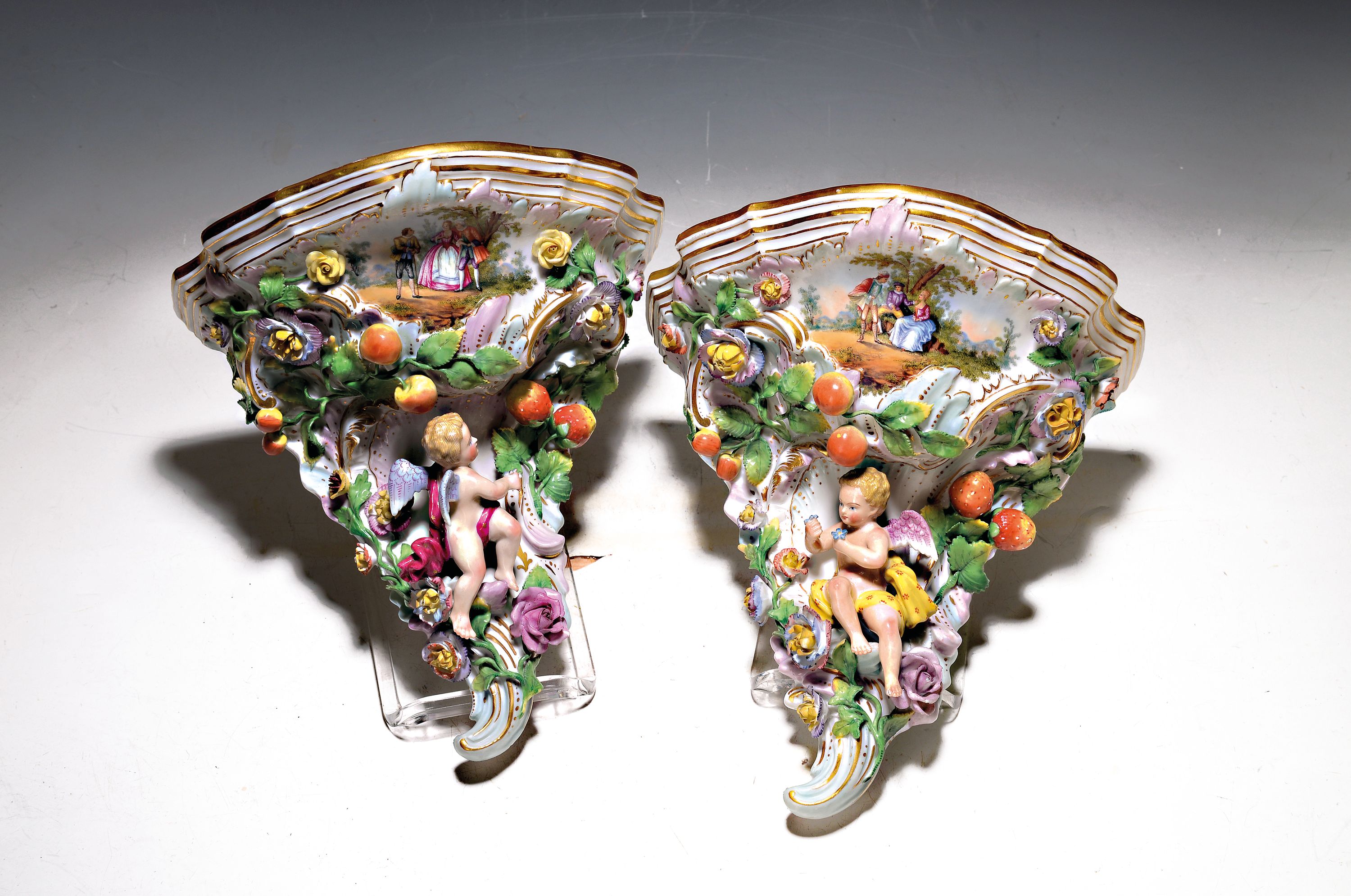 Paar Wandkonsolen im Meissner Manier, Carl Thieme, Potschappel bei Dresden, um 1900,