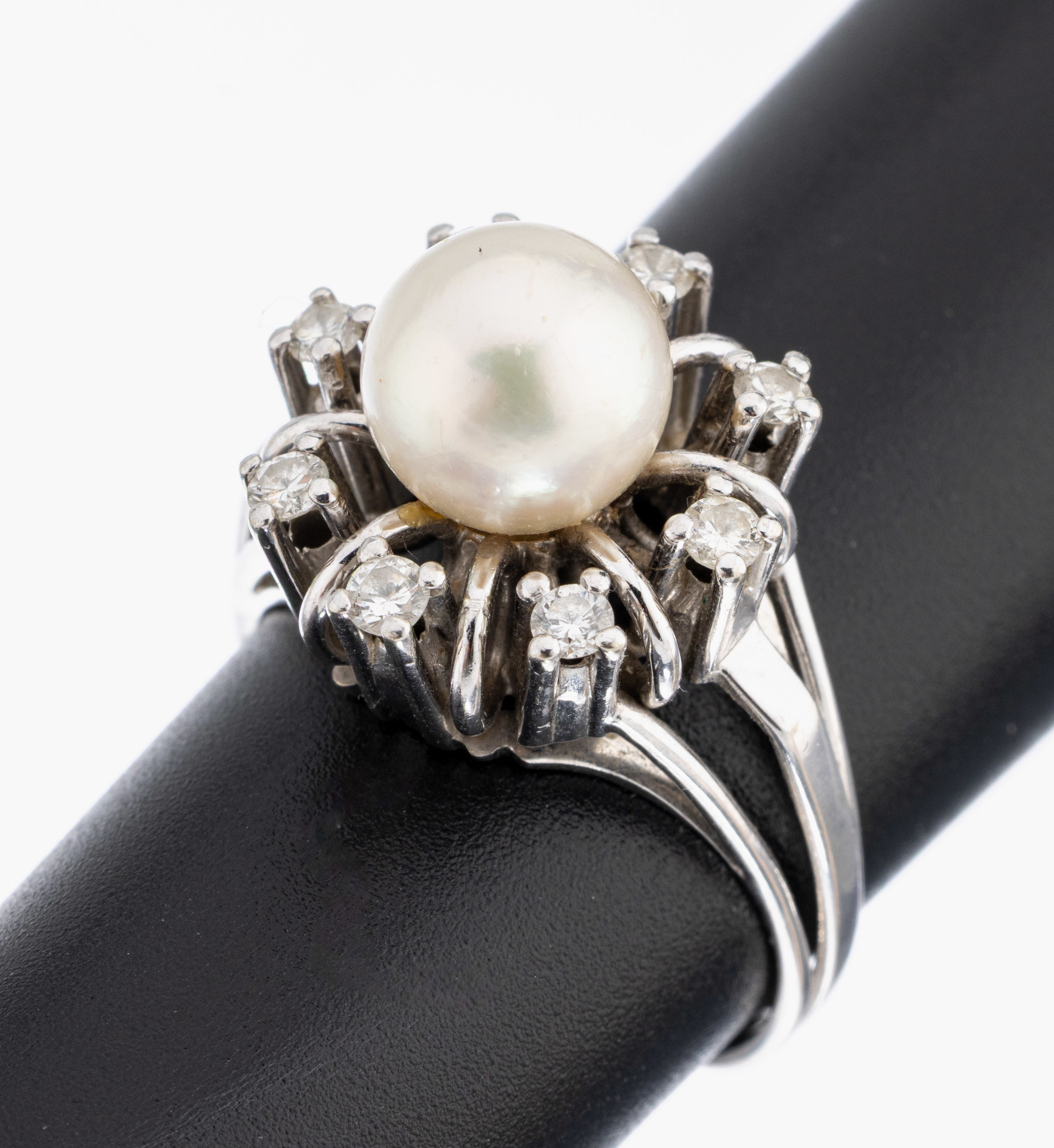 18 kt Gold Perl-Brillant-Ring, WG 750/000, mittige Akoyazuchtperle, D. ca. 8.2 mm,