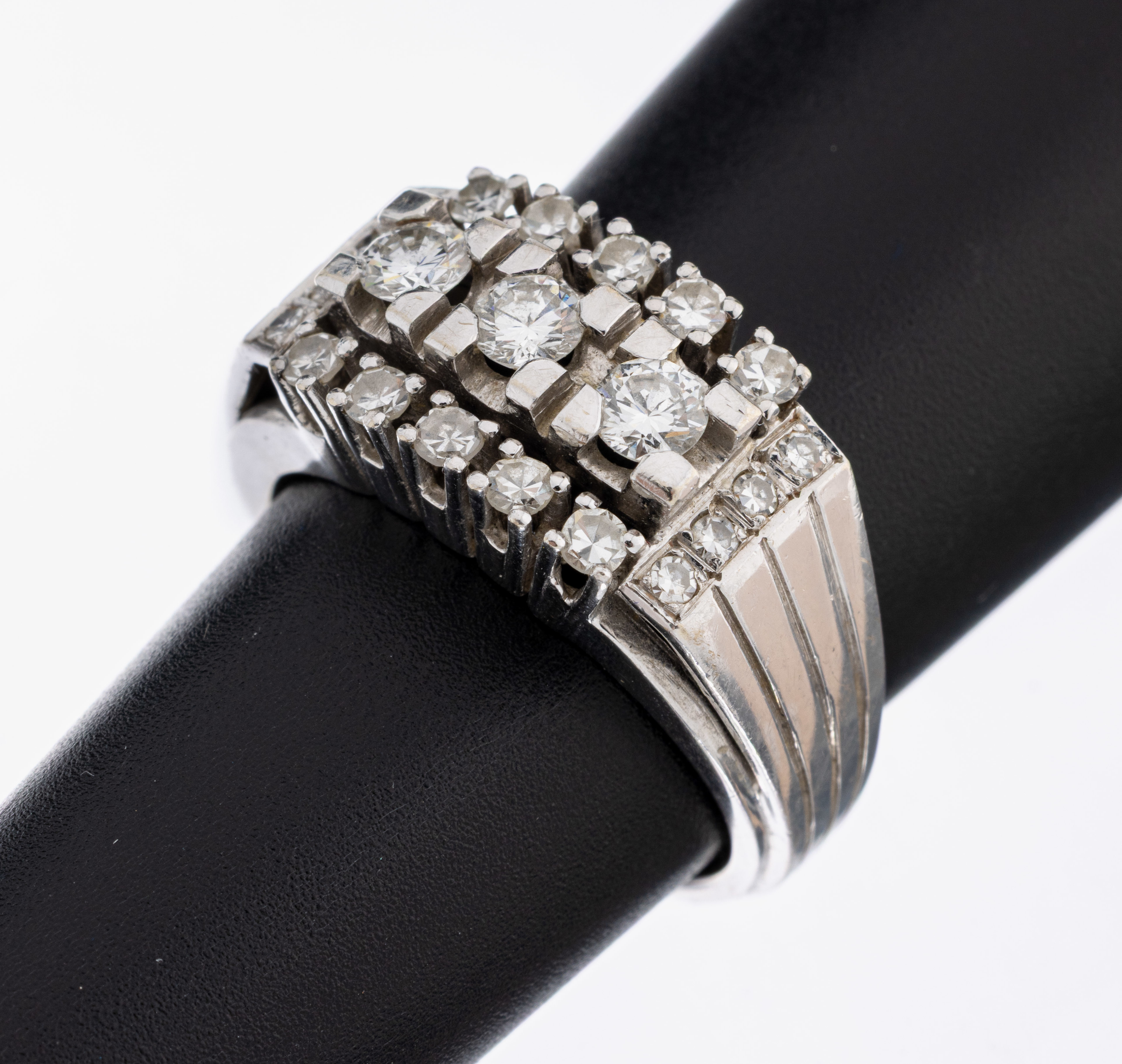 14 kt Gold Diamant-Ring, WG 585/000, 3-rhg.bes. mit 3 Brillanten und 18 8/8-Diamanten