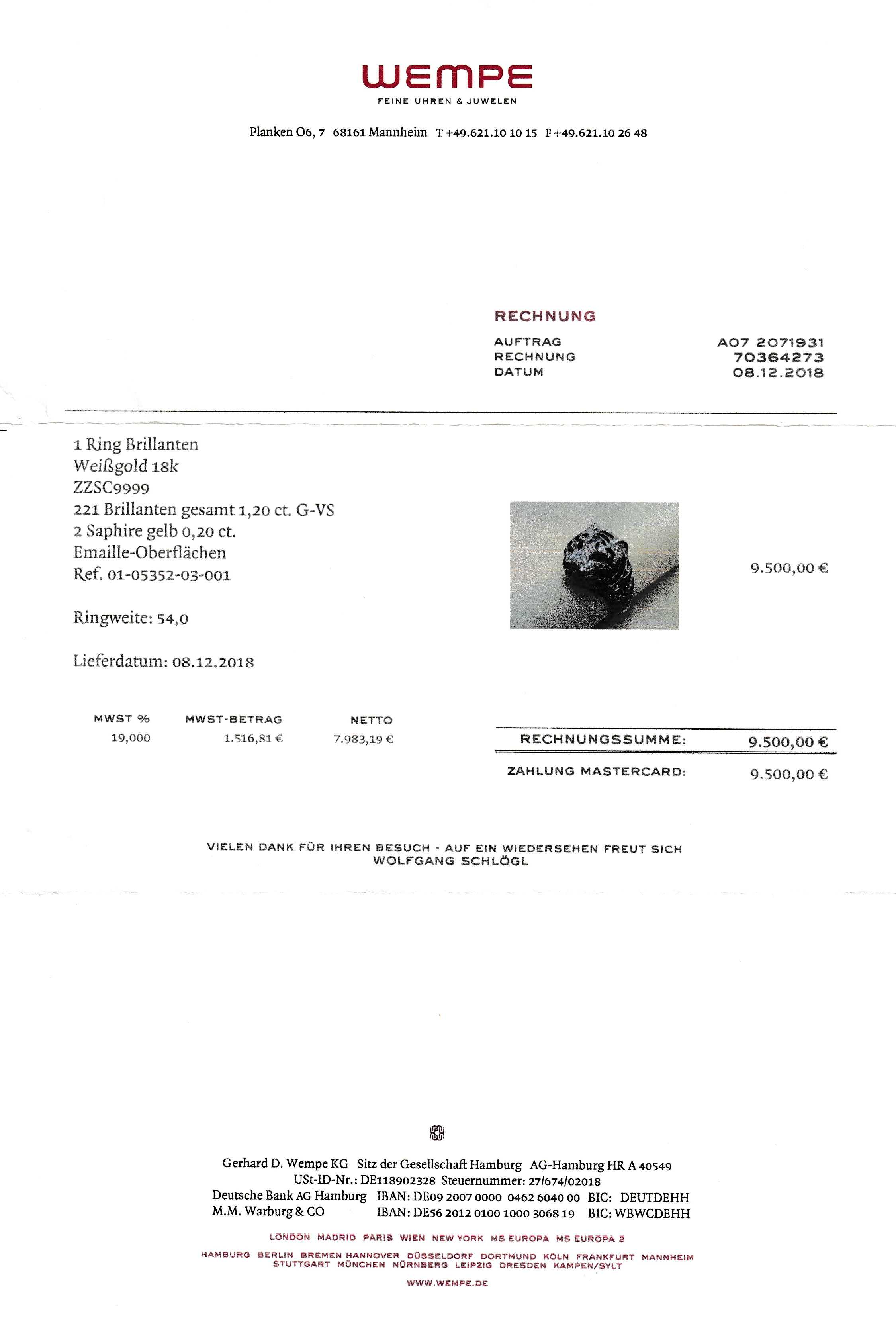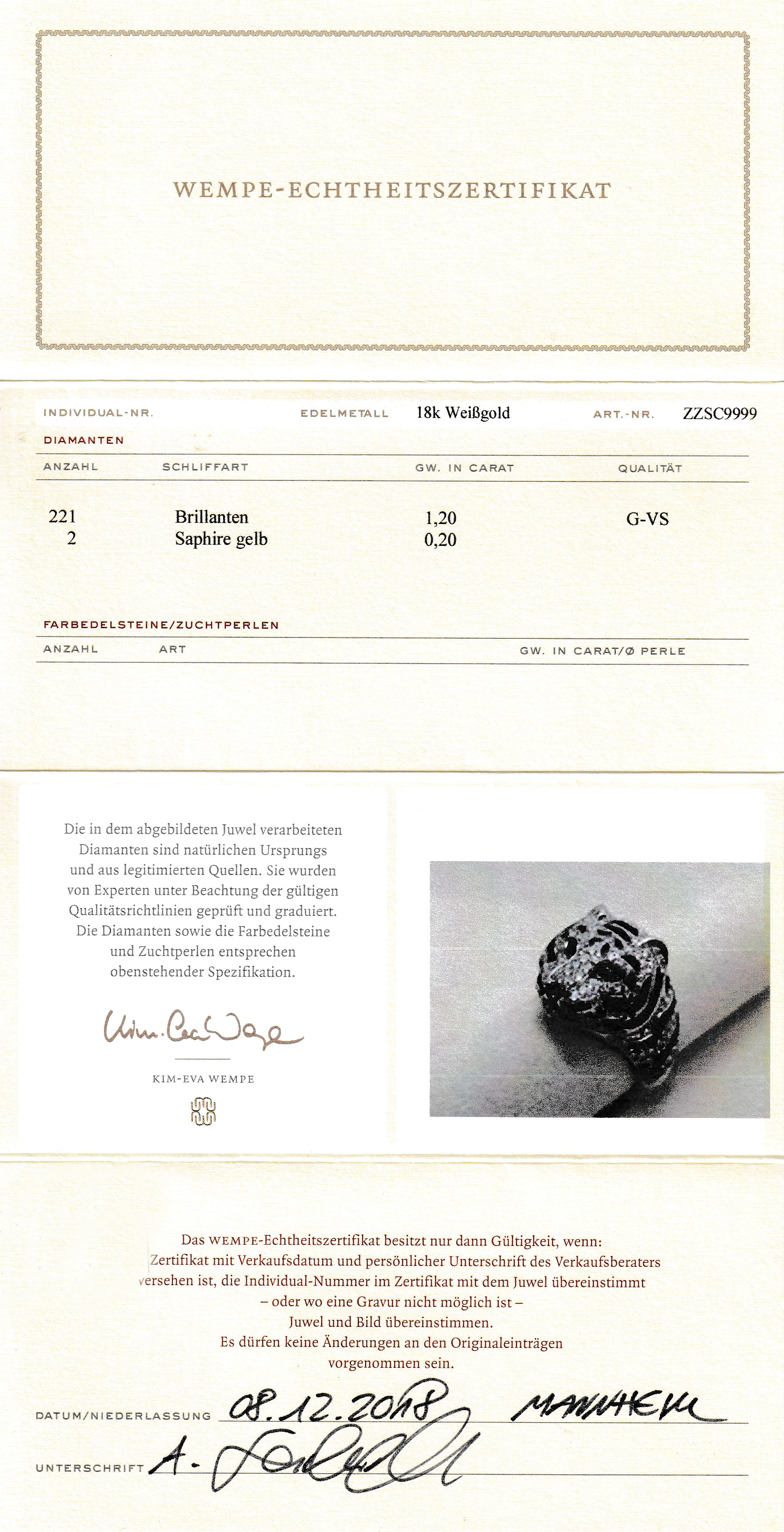 Ausarbeitung, Zertifikat und Rechnung von Wempe anbei, RW 55, ca. 12.1 g Schätzpreis: