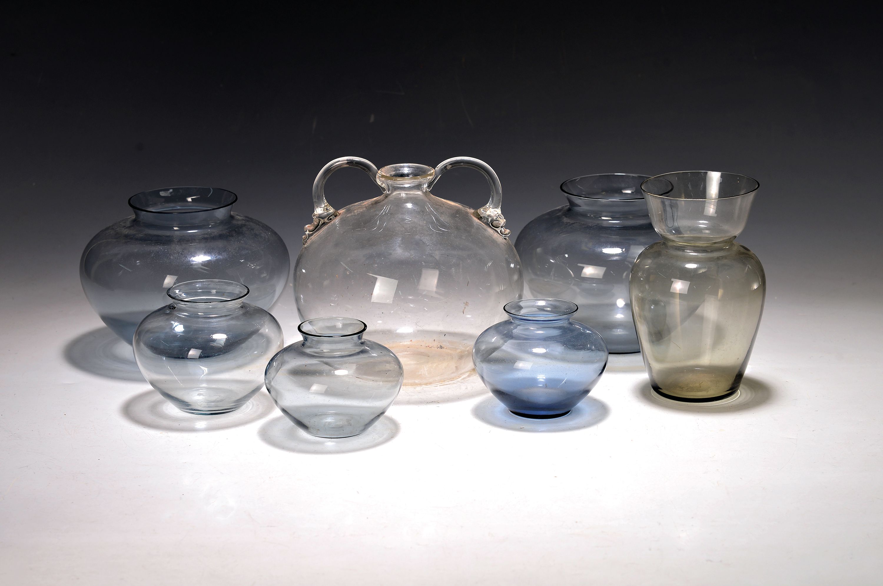 Sammlung aus 10 Glasvasen, überwiegend Entw. Wilhelm Wagenfeld (1900-1990) für