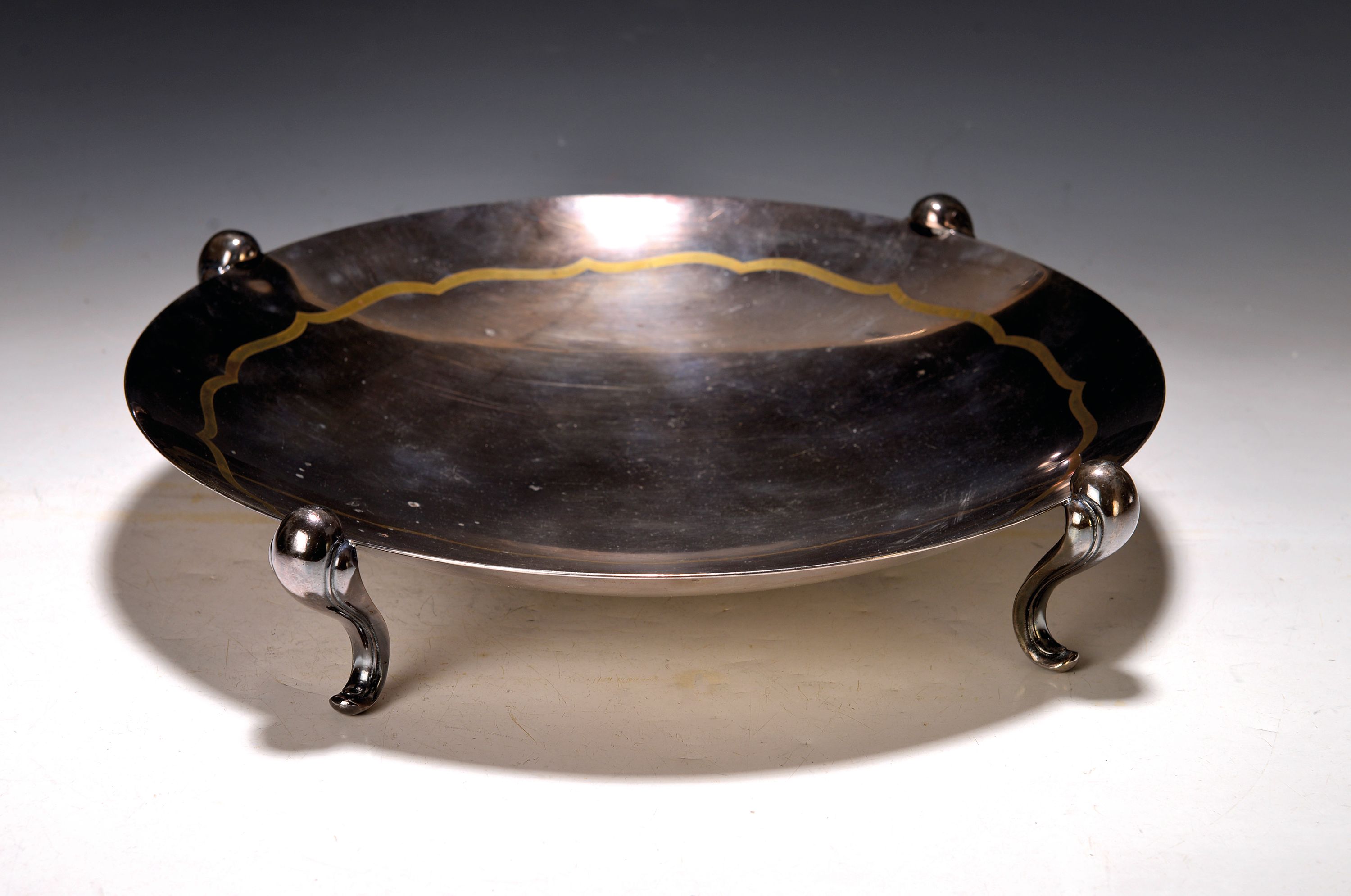 Fußschale 1903/17, Ikora Edelmetall, WMF AG, Entw. 1938, Metall, Echtgold patiniertes