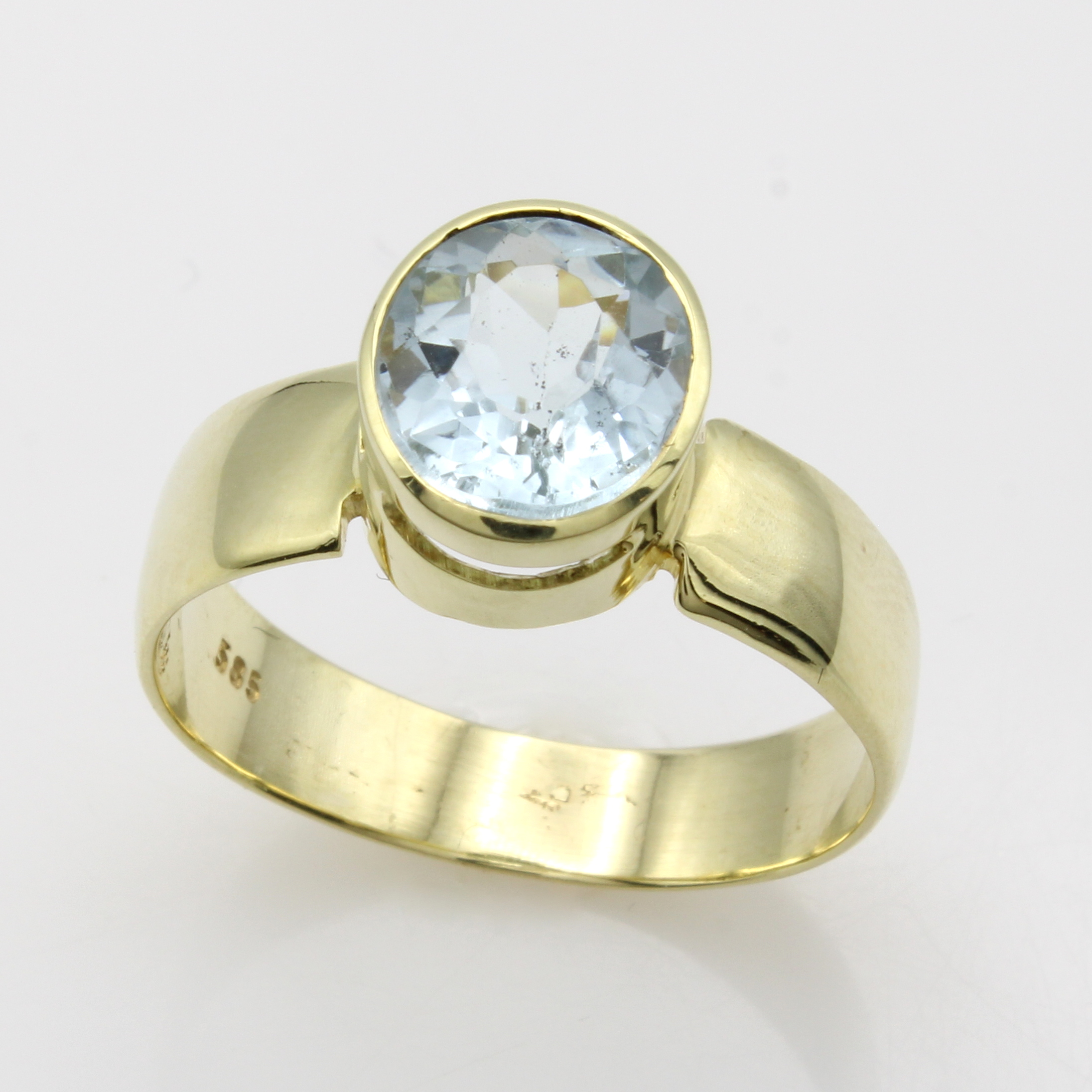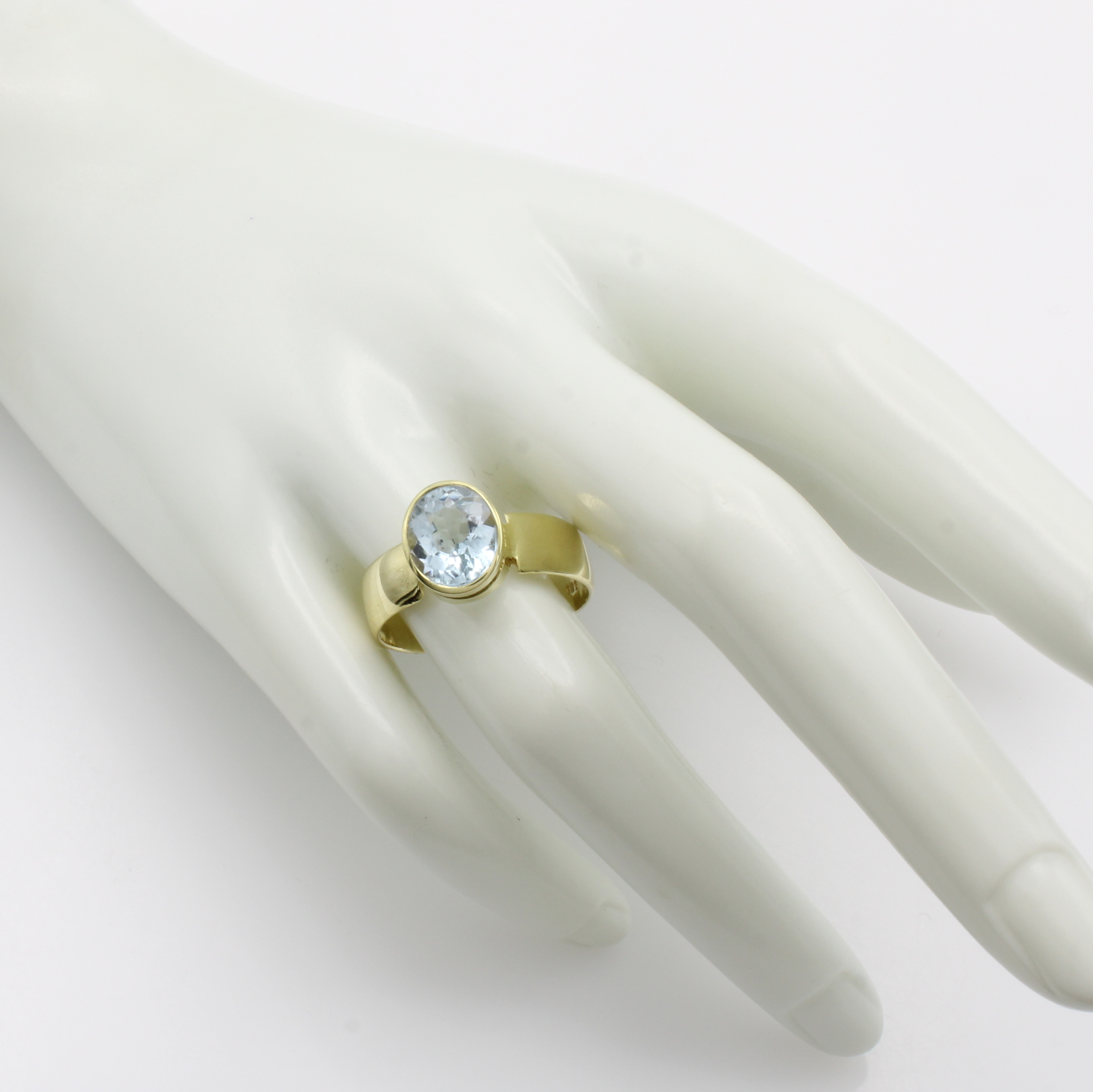 Ring mit Aquamarin, GG 585/000, ovaler Aquam. in glatter Fassung ca. 3.8 ct, RW ca. 63 Schätzpreis: 2480, - EUR