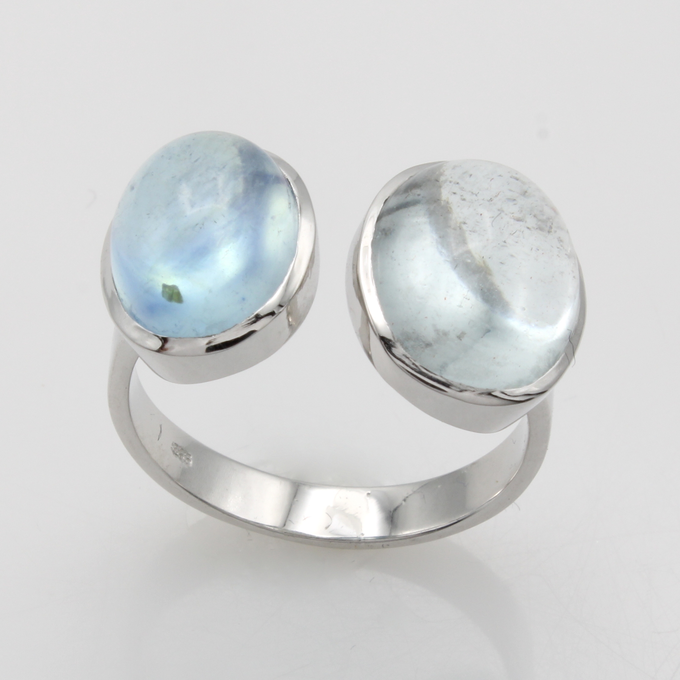 Ring mit Aquamarinen, WG 585/000, 2 ovale Aquamarincabochons zus. ca. 9.2 ct, RW ca. 59 Schätzpreis: 2600, - EUR