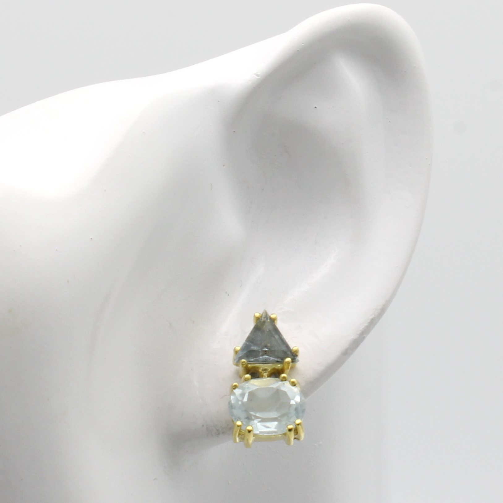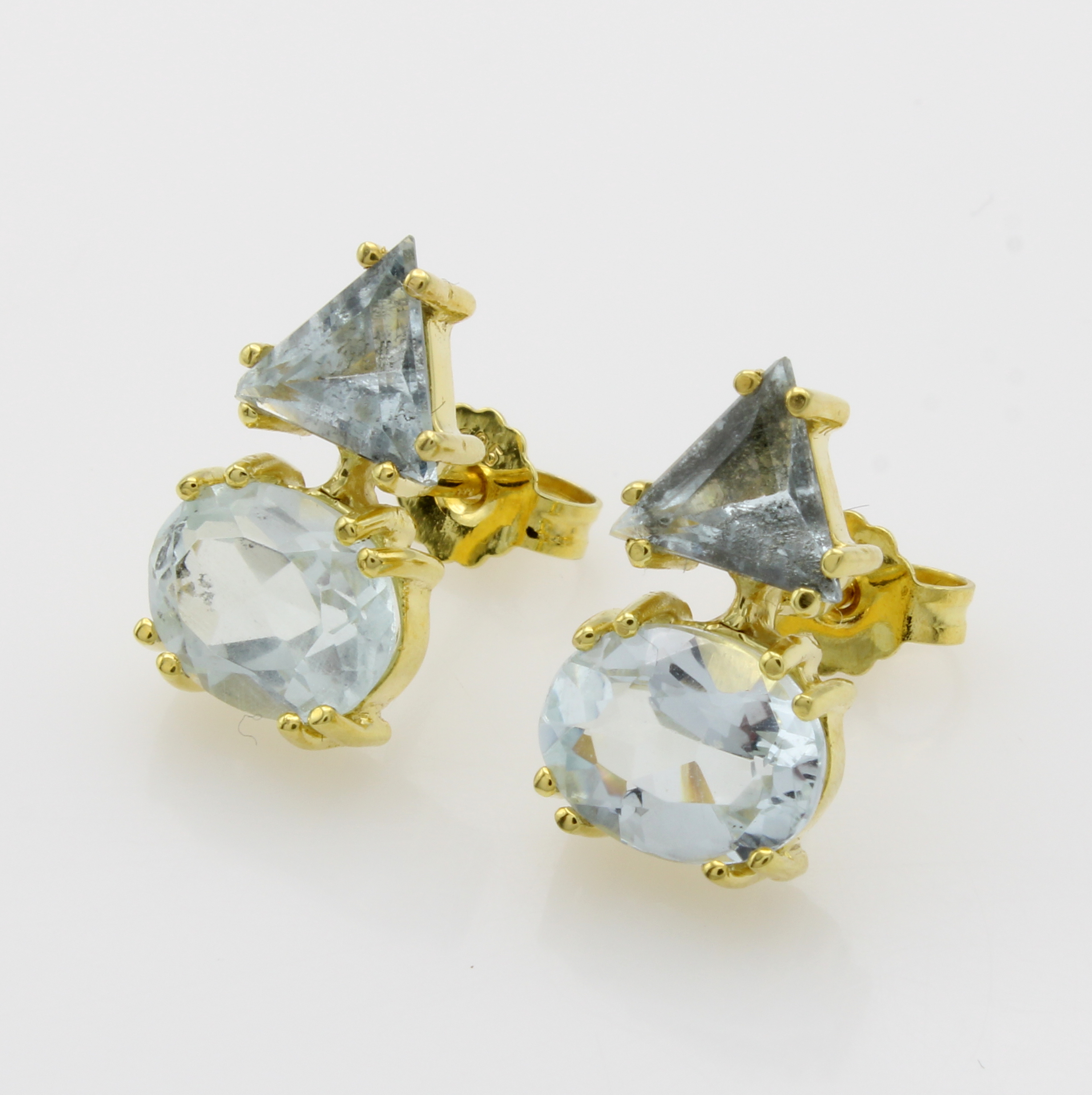 Paar Ohrstecker mit Aquamarinen, GG 585/000, 2 ovale u. 2 dreieckige Aquam. zus. ca. 5.5 ct Schätzpreis: 1400, - EUR