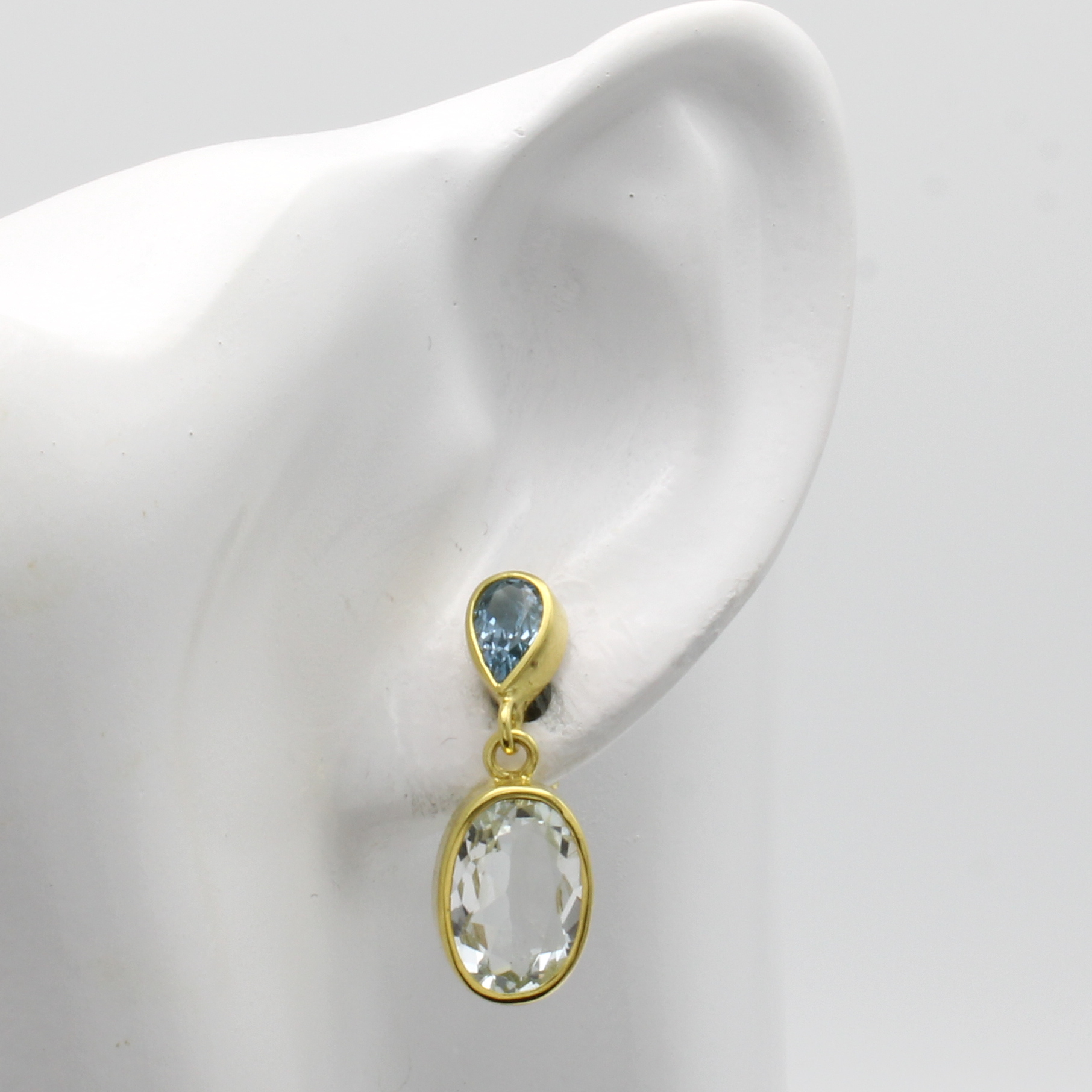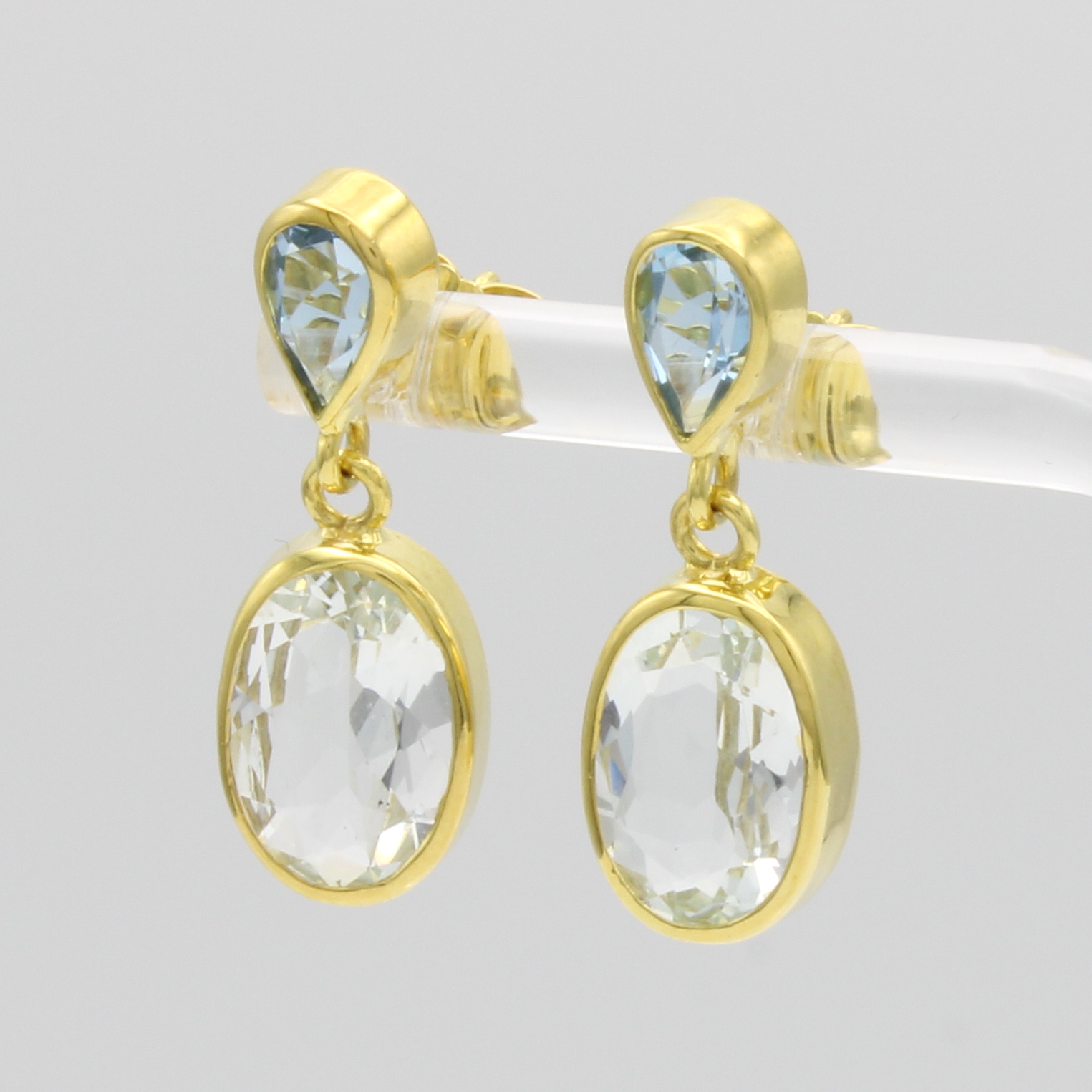 Paar Ohrstecker mit Aquamarinen, GG 585/000, 2 tropfenf. u. 2 ovale Aquam. zus. ca. 7 ct, Abhängungen bewegl. Schätzpreis: 2290, - EUR