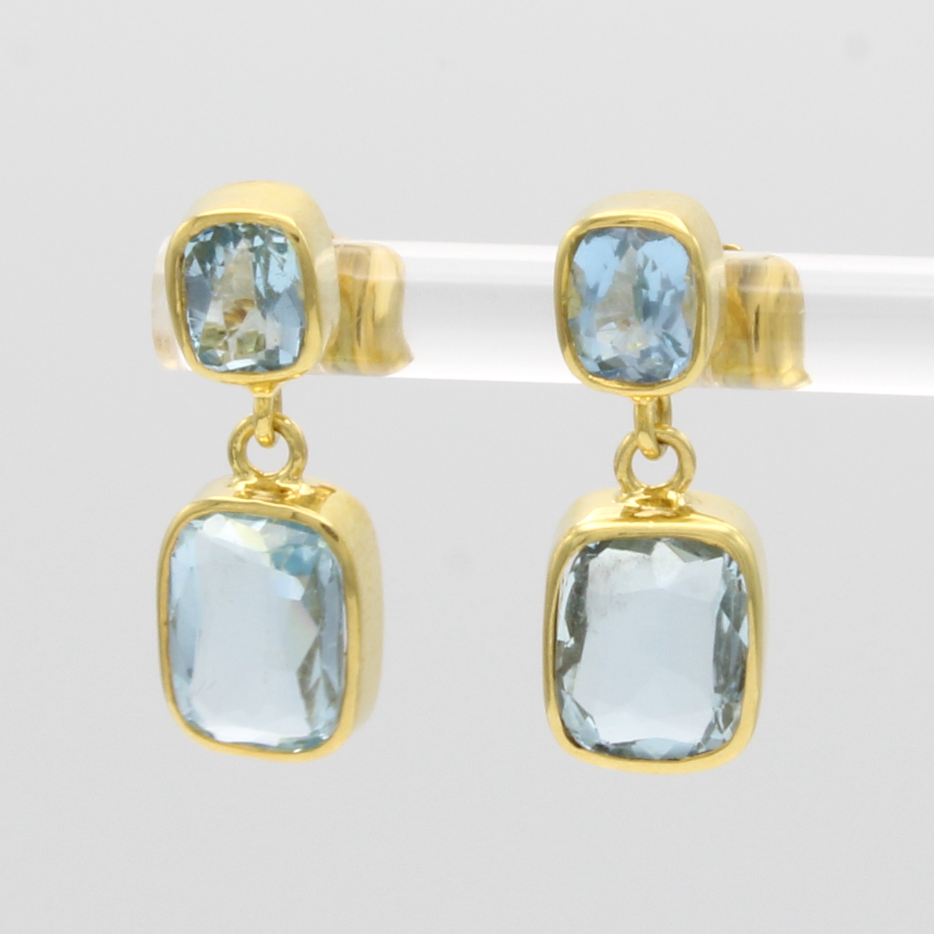 Paar Ohrstecker mit Aquamarinen, GG 585/000, 4 Aquam. in glatten Fassungen zus. ca. 4.6 ct, bewegl. gearb. Schätzpreis: 2300, - EUR