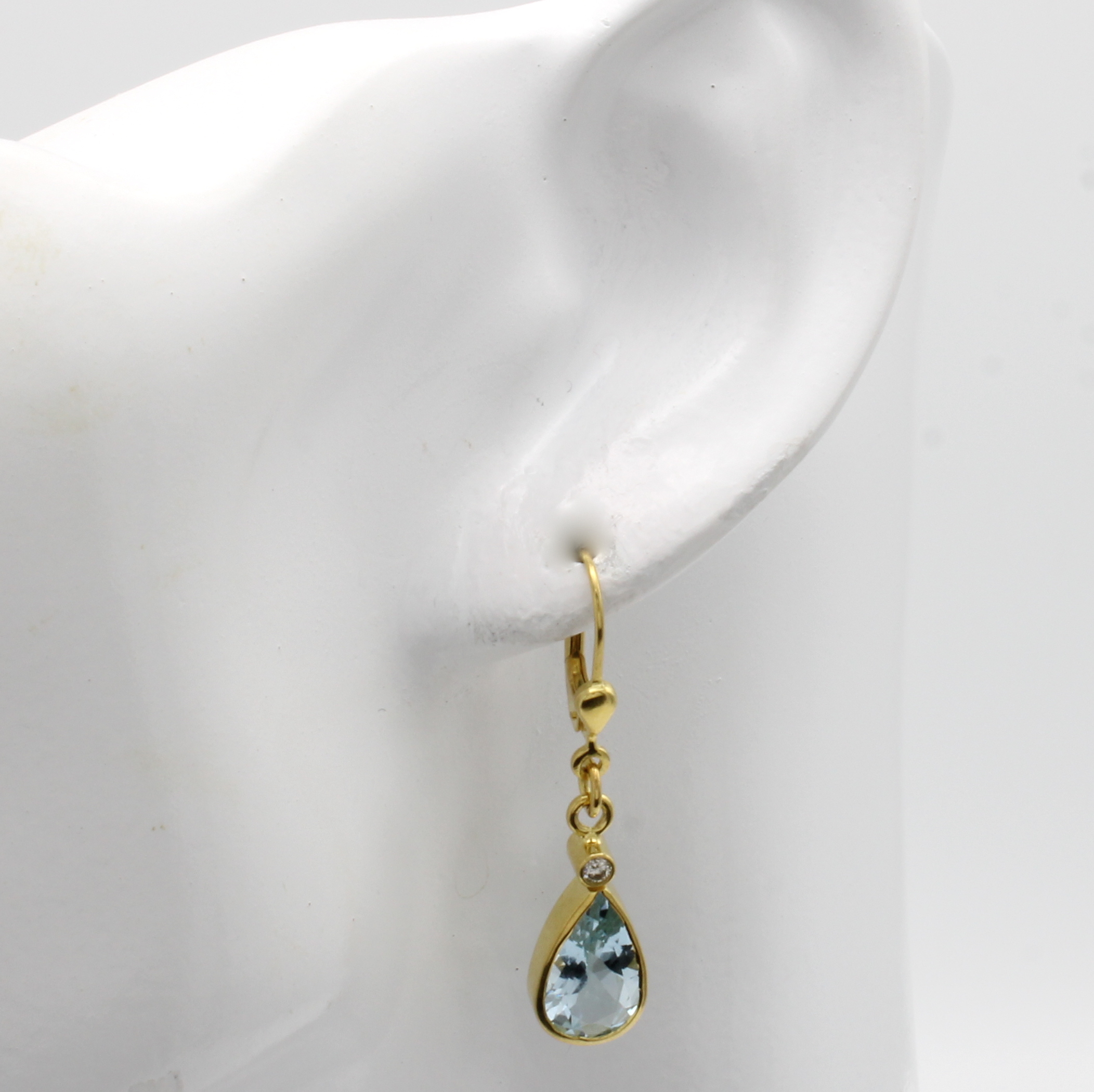 Paar Ohrgehänge mit Aquamarinen und Diamanten, GG 585/000, 2 tropfenf. Aquam. zus. ca. 4.3 ct, 2 Diam. zus. ca. 0.07 ct Weiß/p Schätzpreis: 2200, - EUR