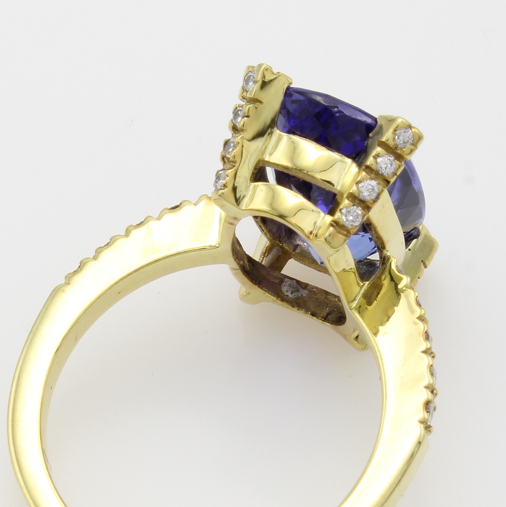 Ring mit Tansanit und Brillanten, GG 750/000, ovaler Tansanit v. schöner Farbe ca. 5.68 ct, Krappen u. Ringschultern bes. m. Brill. zus. ca. 0.25 ct Weiß/si, RW ca. 55 Schätzpreis: 8800, - EUR