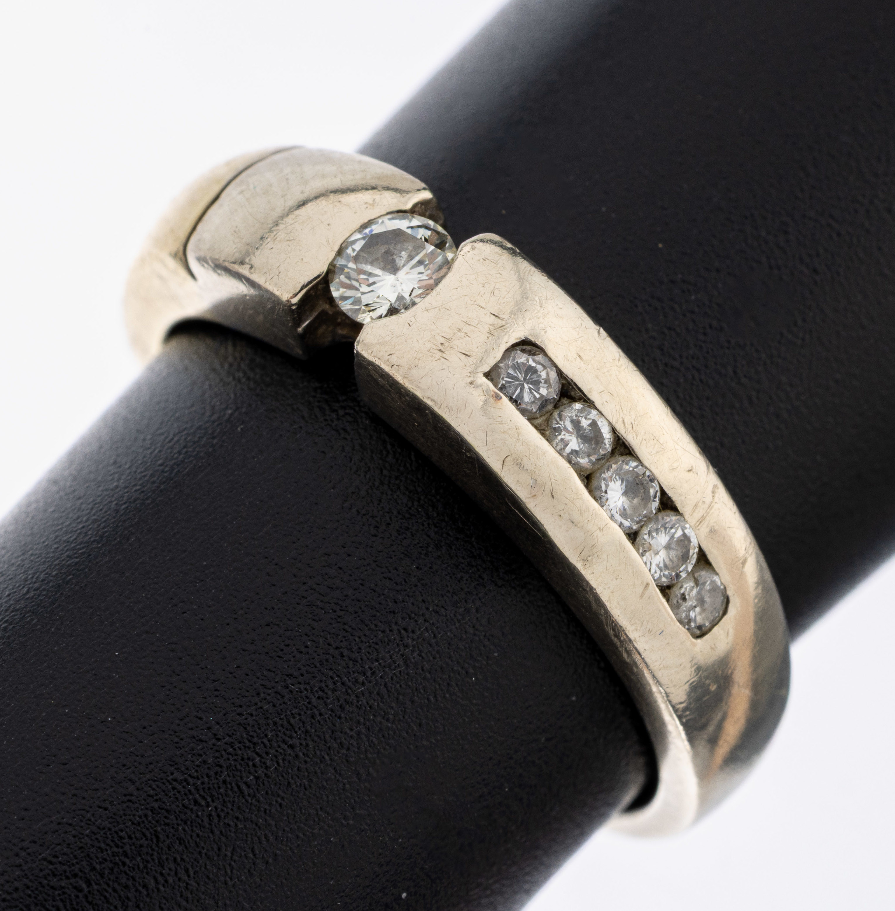 14 kt Gold Brillant-Ring, GG/WG 585/000, 6 Brillanten zus. ca. 0.16 ct Weiß/si,