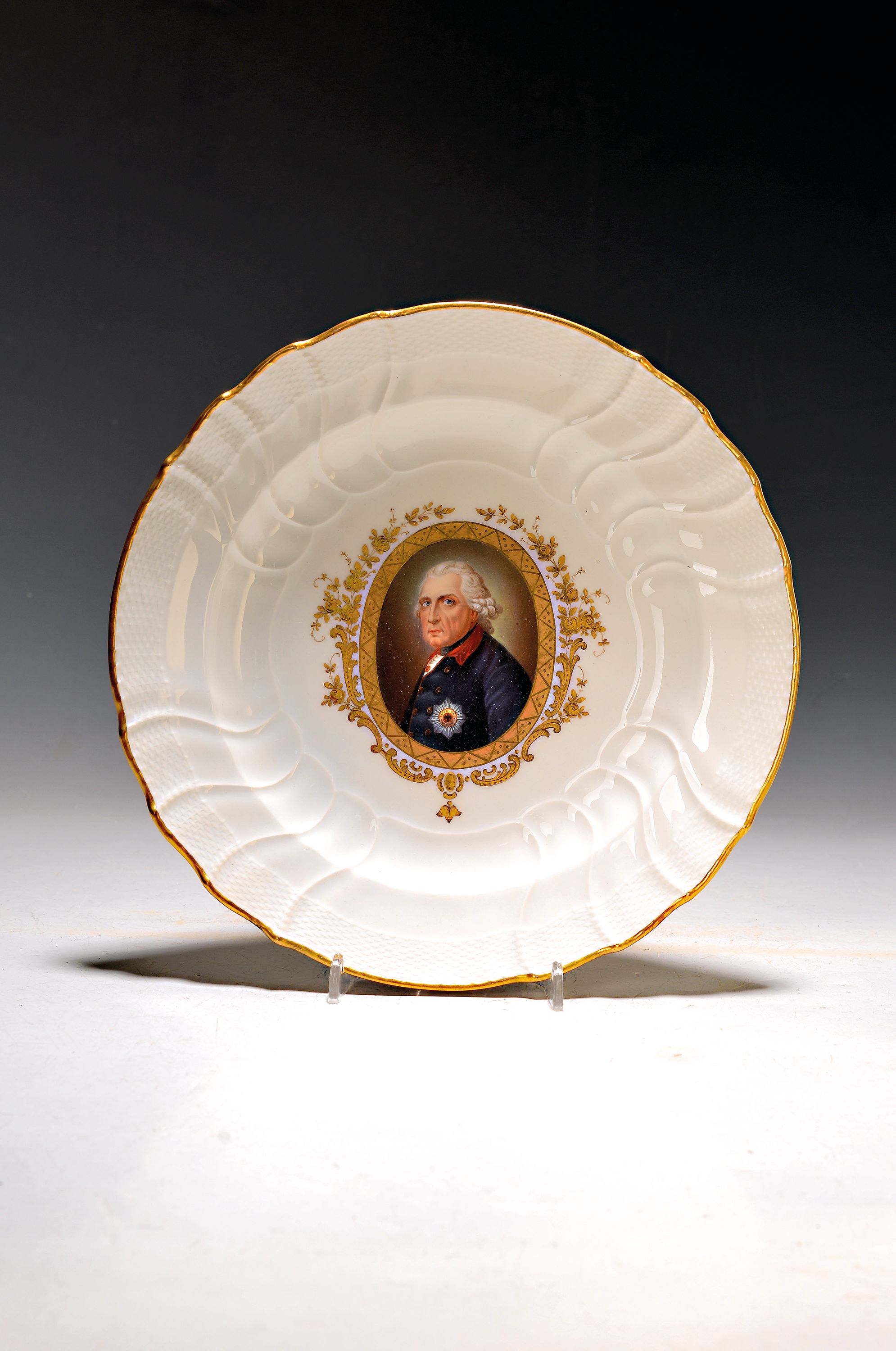 Patriotischer Teller, KPM Berlin, Anfang 20. Jh., Porzellan, im oval Porträt König