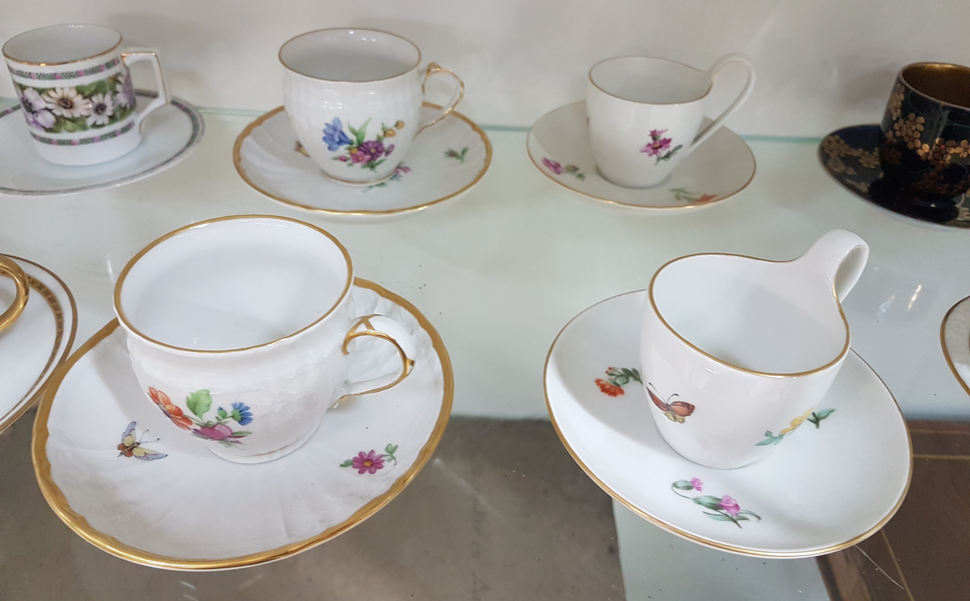 14 Mokkatassen, deutsch, 20. Jh., Porzellan, u.a.: 5 x KPM Berlin, Schwarzenhammer, Krautheim, Württemberg, Hutschenreuther, Rosenthal, teilweise handbemalt, z.T. lithographiert