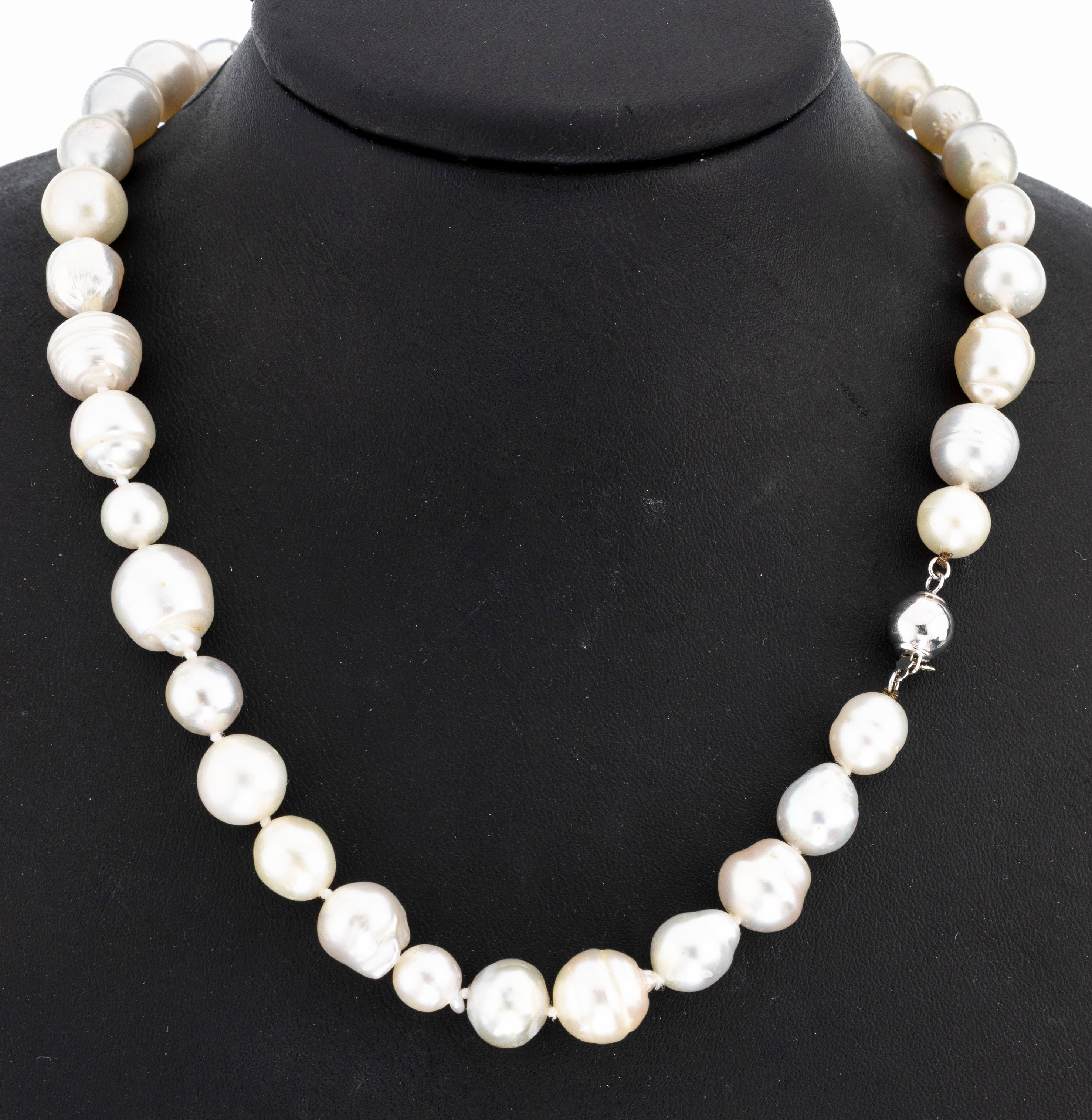 Perl-Collier, weiße unrunde Süßwasserzuchtperlen, D. ca. 8-12 mm, nat. Wachstumsmerkmale,