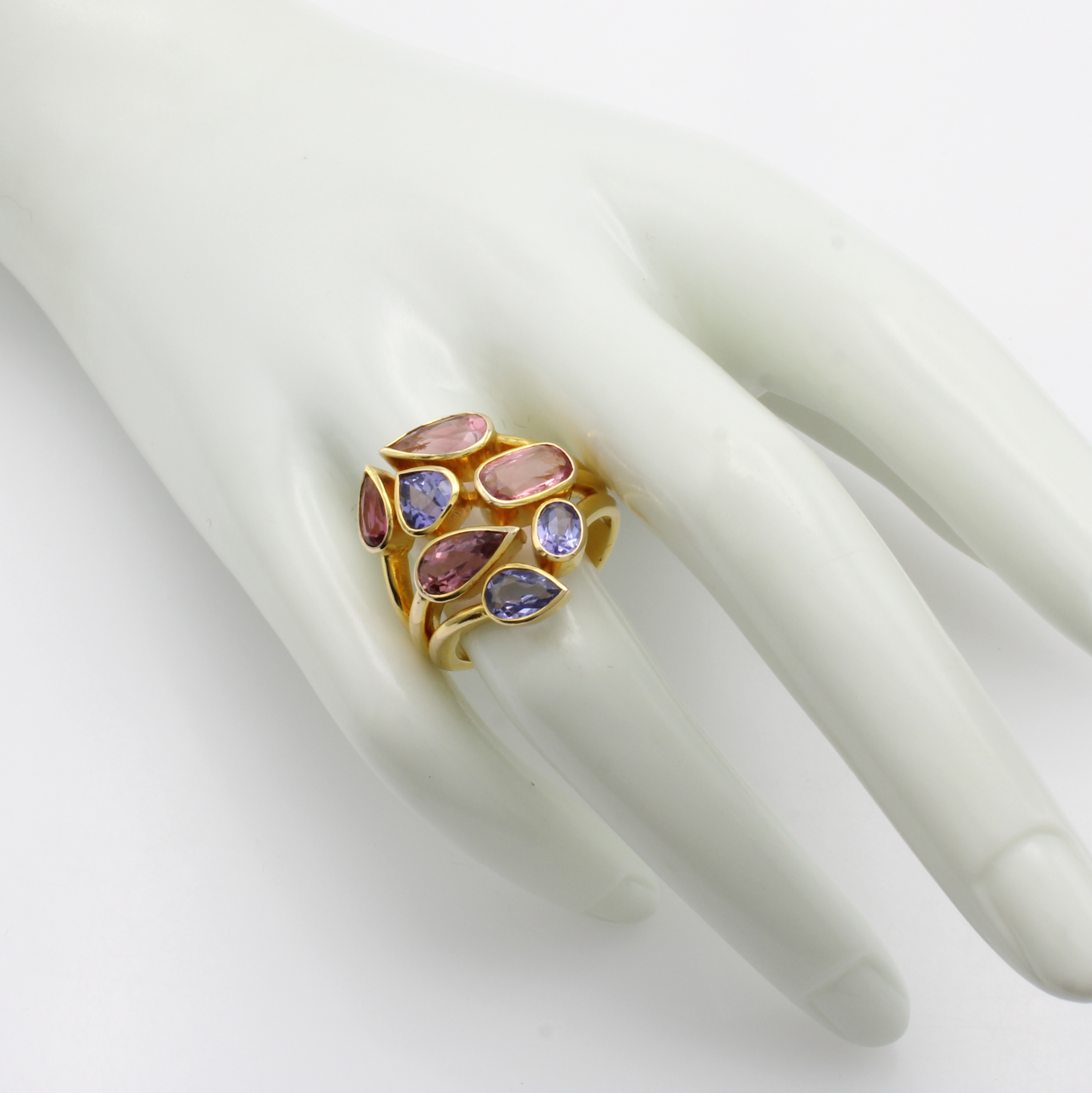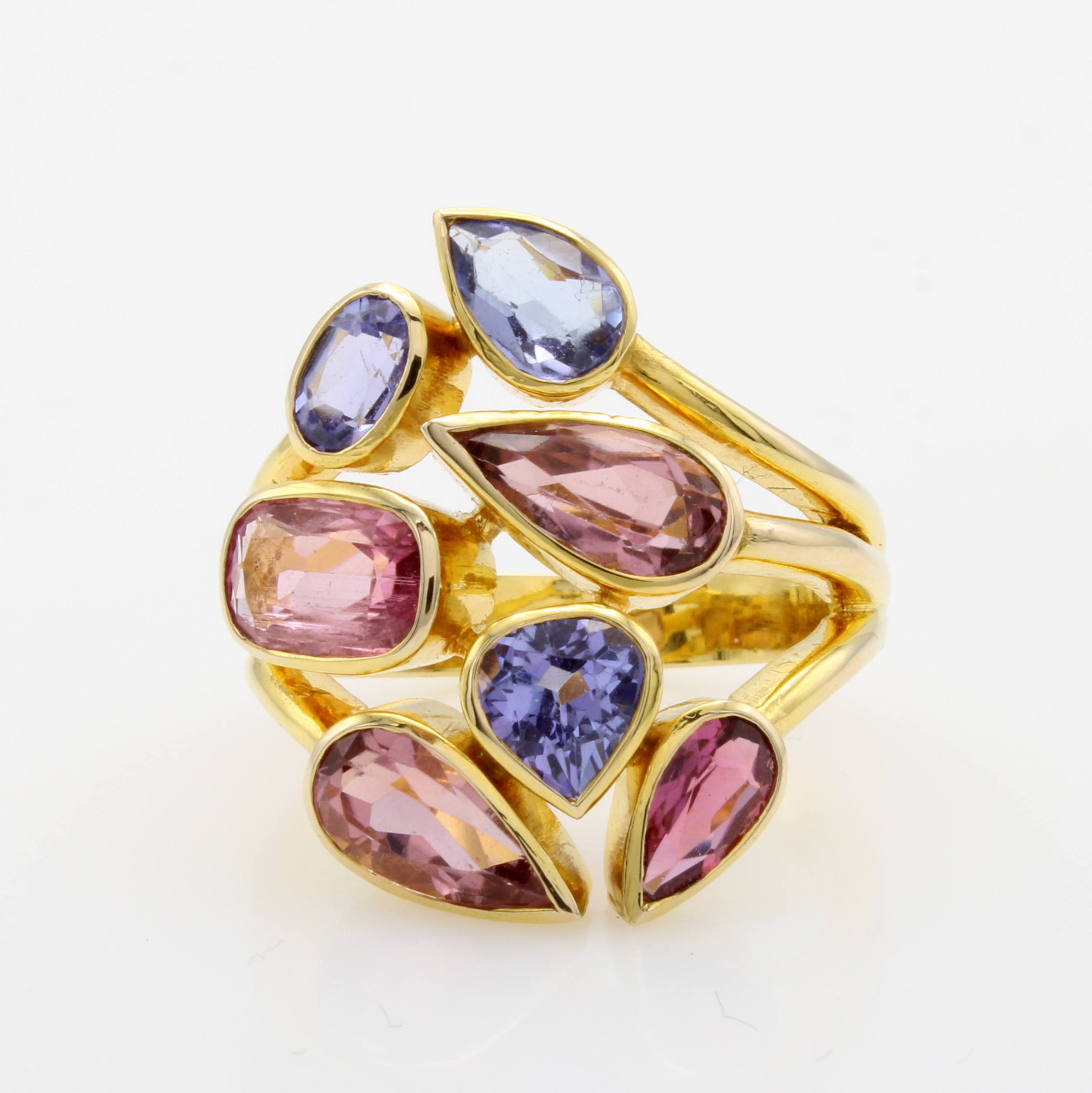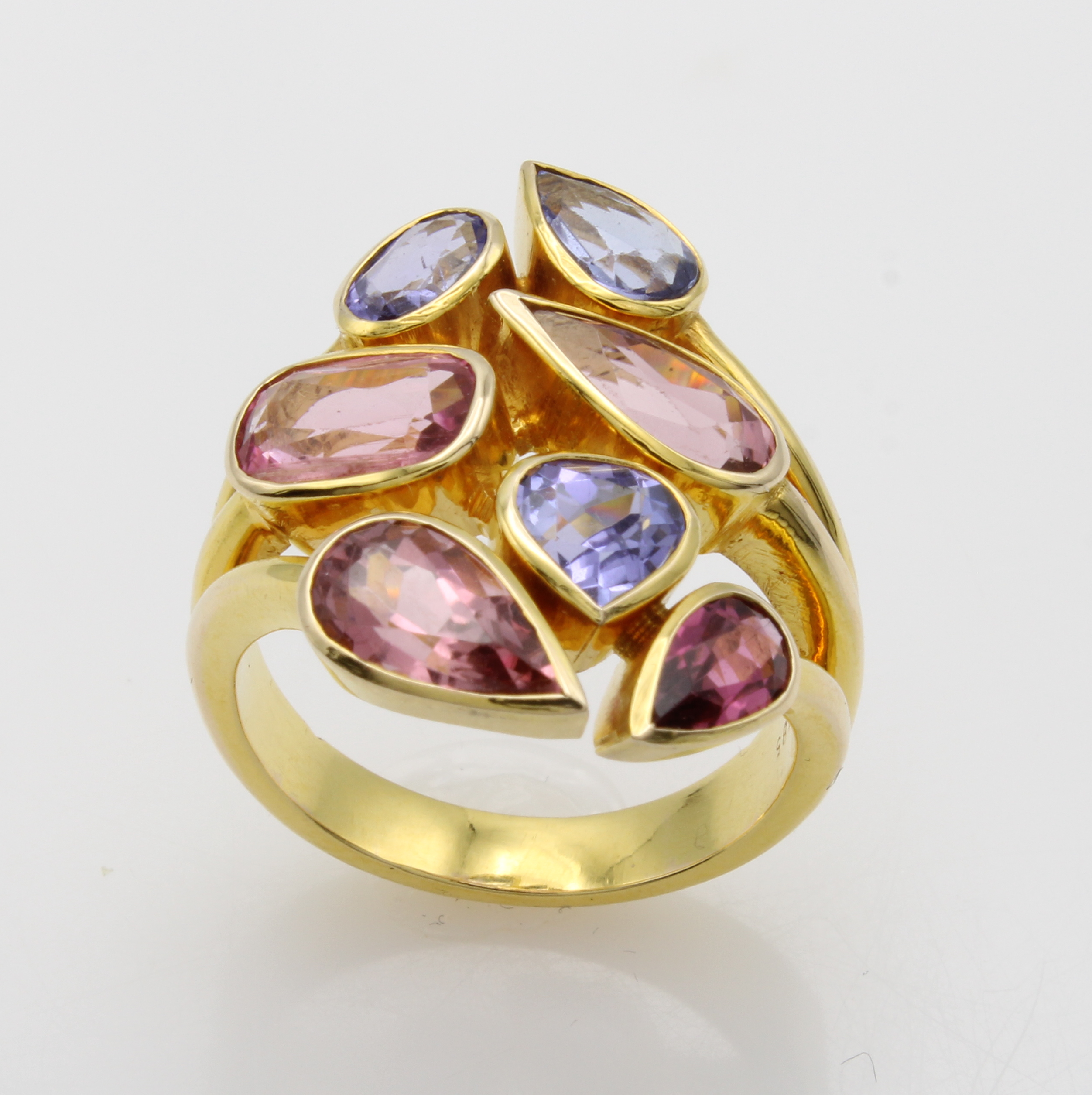 Ring mit Turmalinen und Tansaniten, GG 585/ 000, 7 Farbsteine in versch. Schliffarten zus. ca. 5.5 ct, RW ca. 58 Schätzpreis: 4600, - EUR