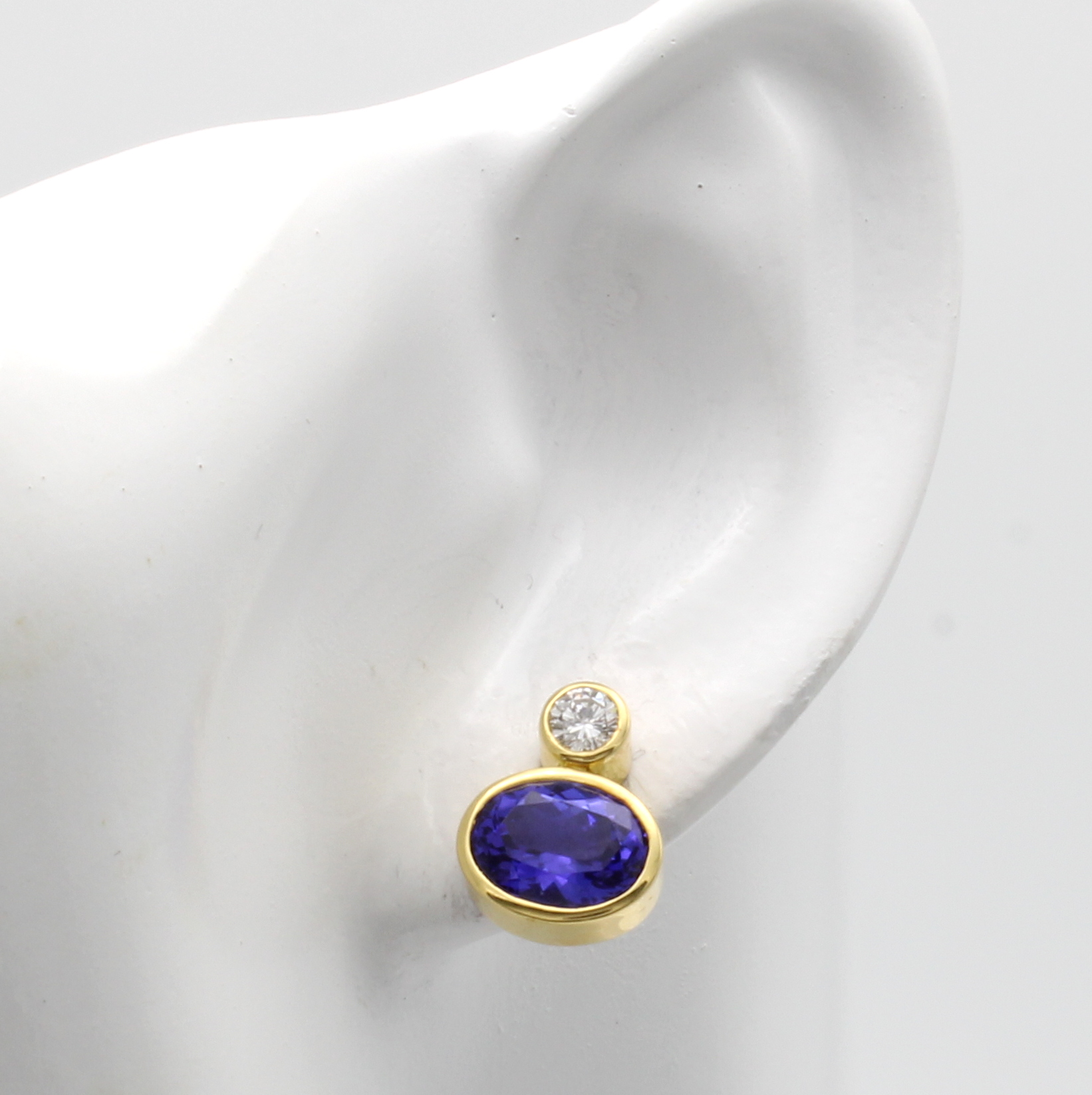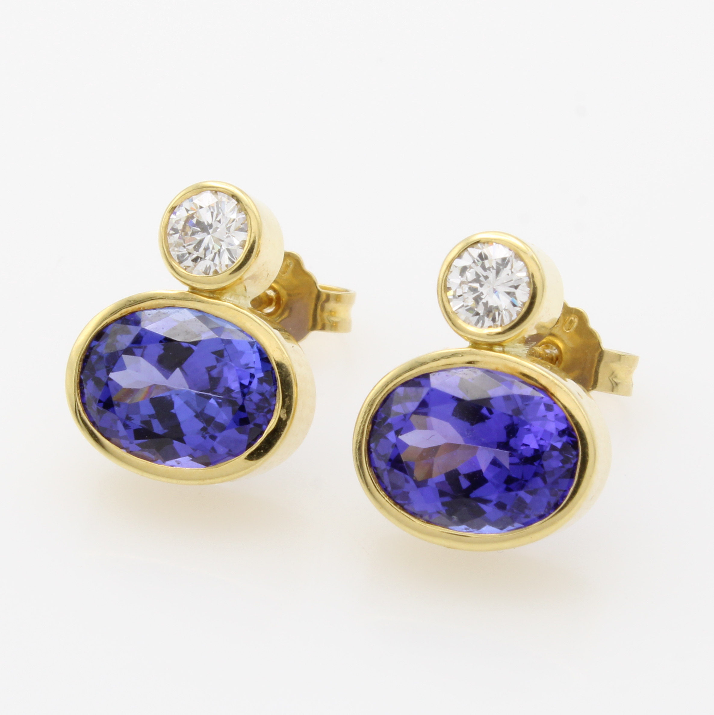 Paar Ohrstecker mit Tansaniten und Brillanten, GG 585/000, 2 ovale Tansanite zus. ca. 4.42 ct, 2 Brill. zus. ca. 0.40 ct hochfeines Weiß/si Schätzpreis: 8500, - EUR