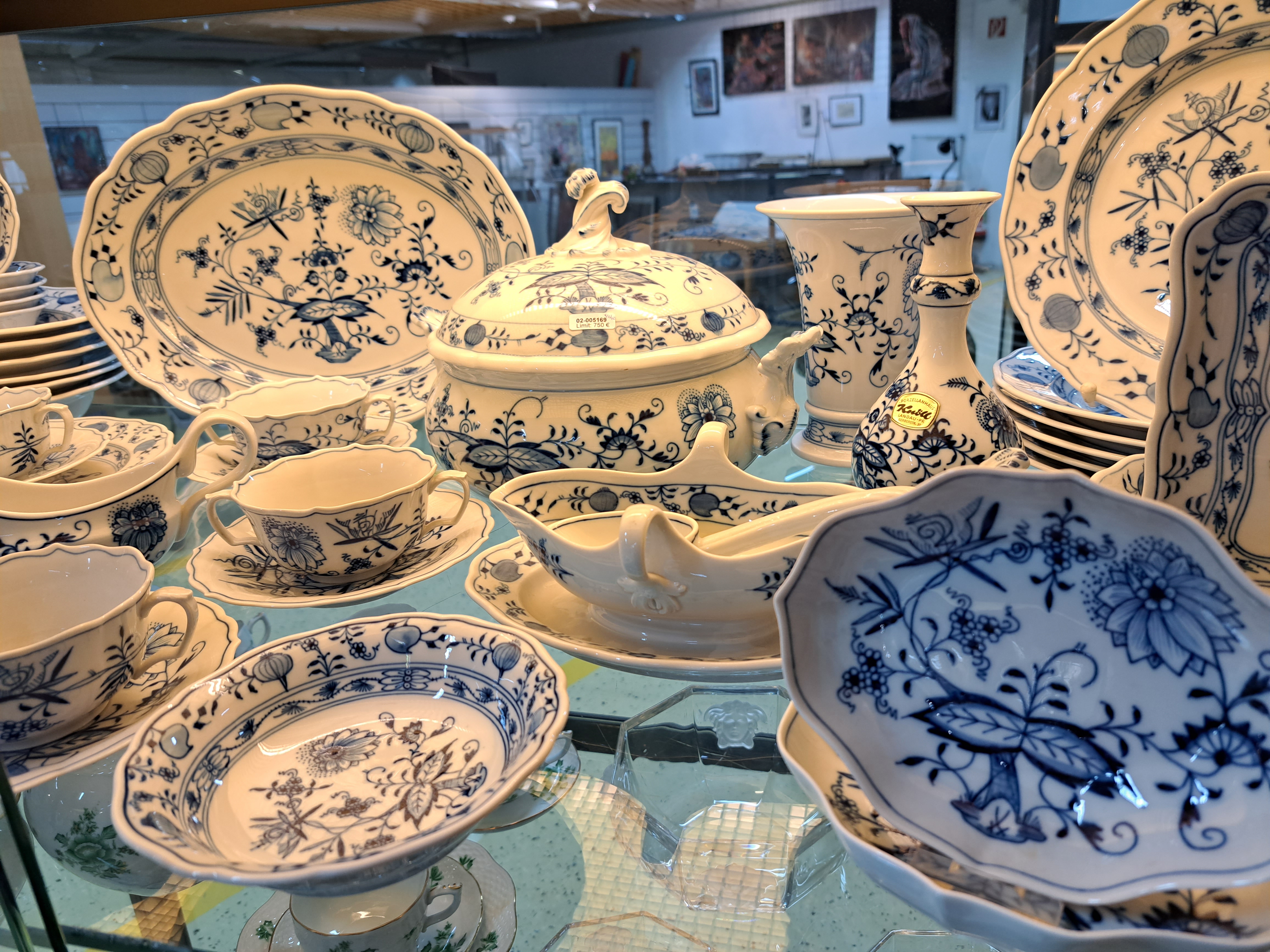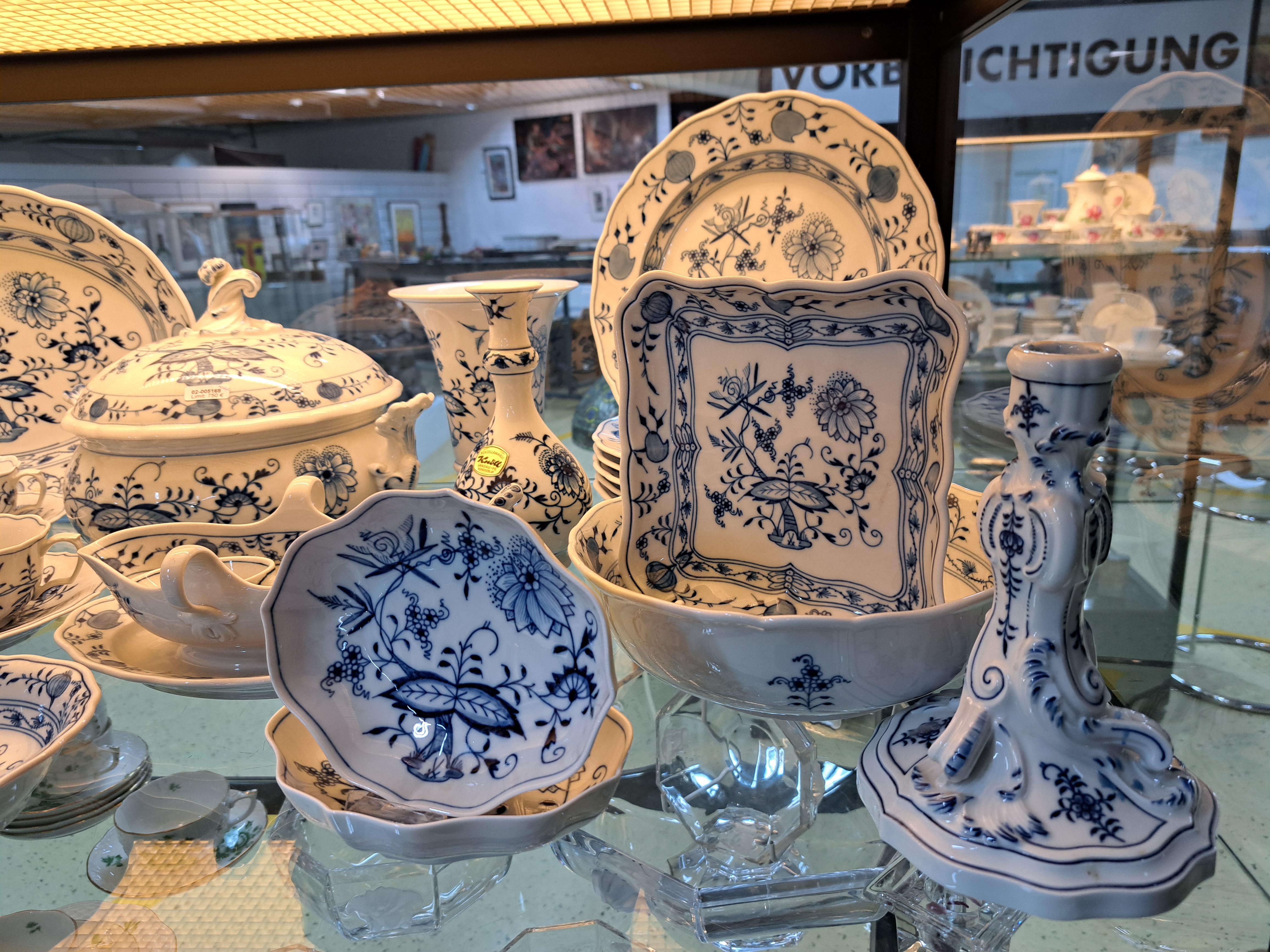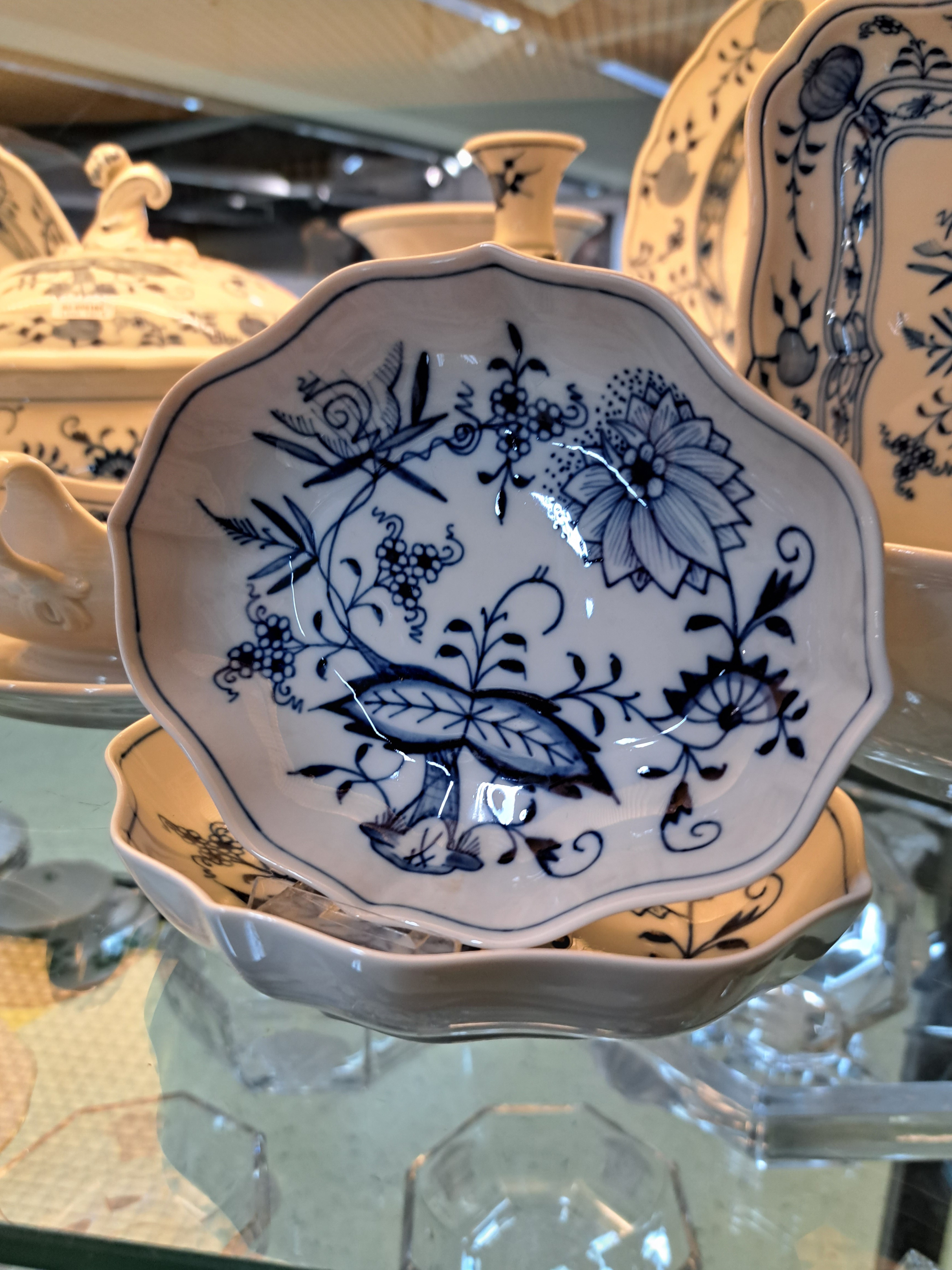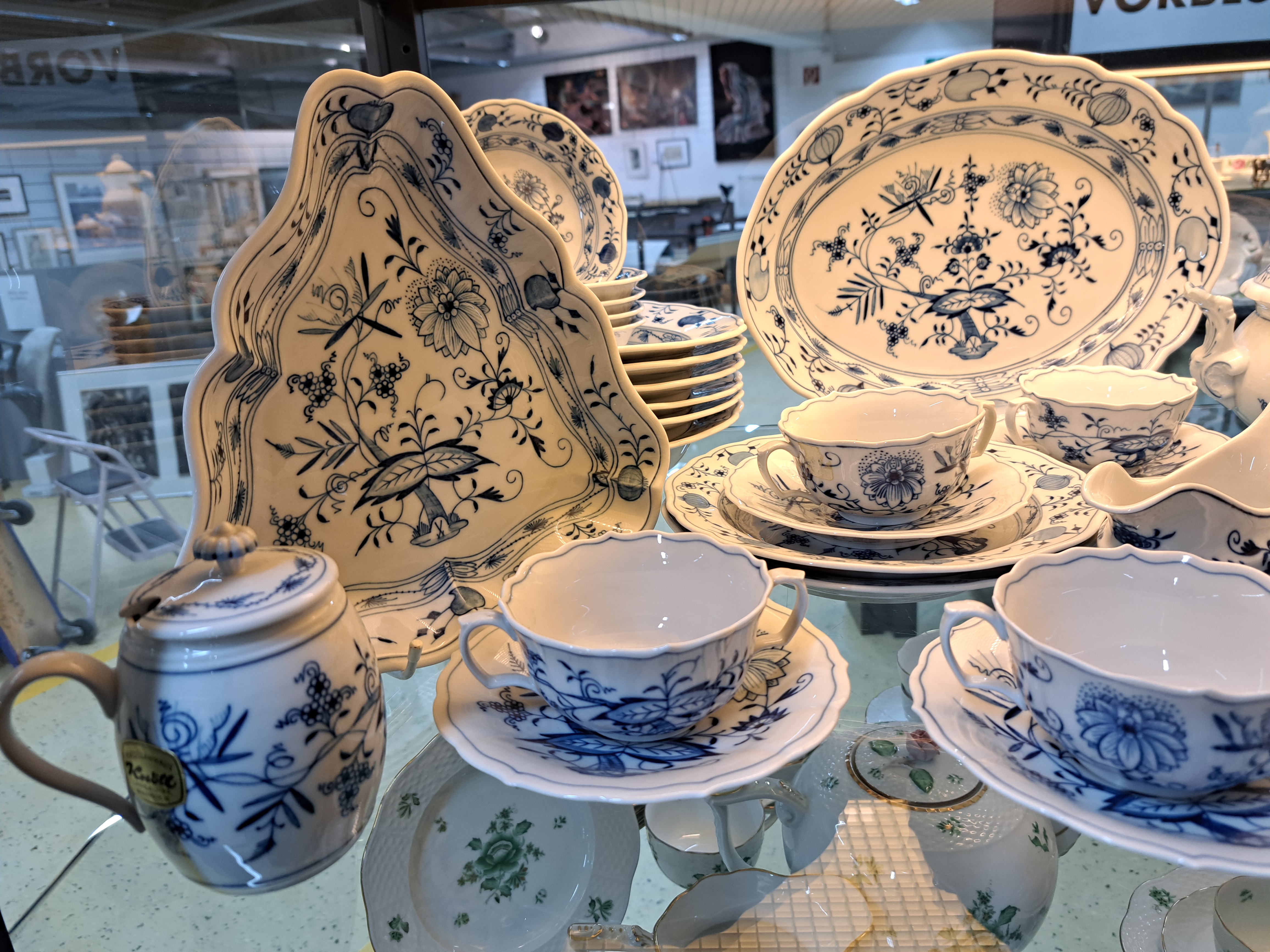 Tafelservice, Meissen, 20. Jh., Zwiebelmuster, 6 Menueteller, 6 Suppenteller, 2 Abendbrotteller,
