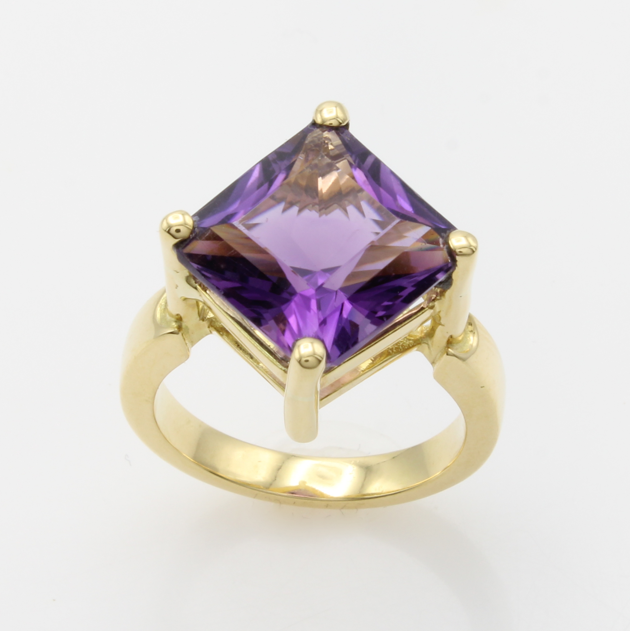 Ring mit Amethyst, GG 585/000, Amethyst- carrée in Krappenfassung ca. 13 ct, RW ca. 54 Schätzpreis: 4780, - EUR