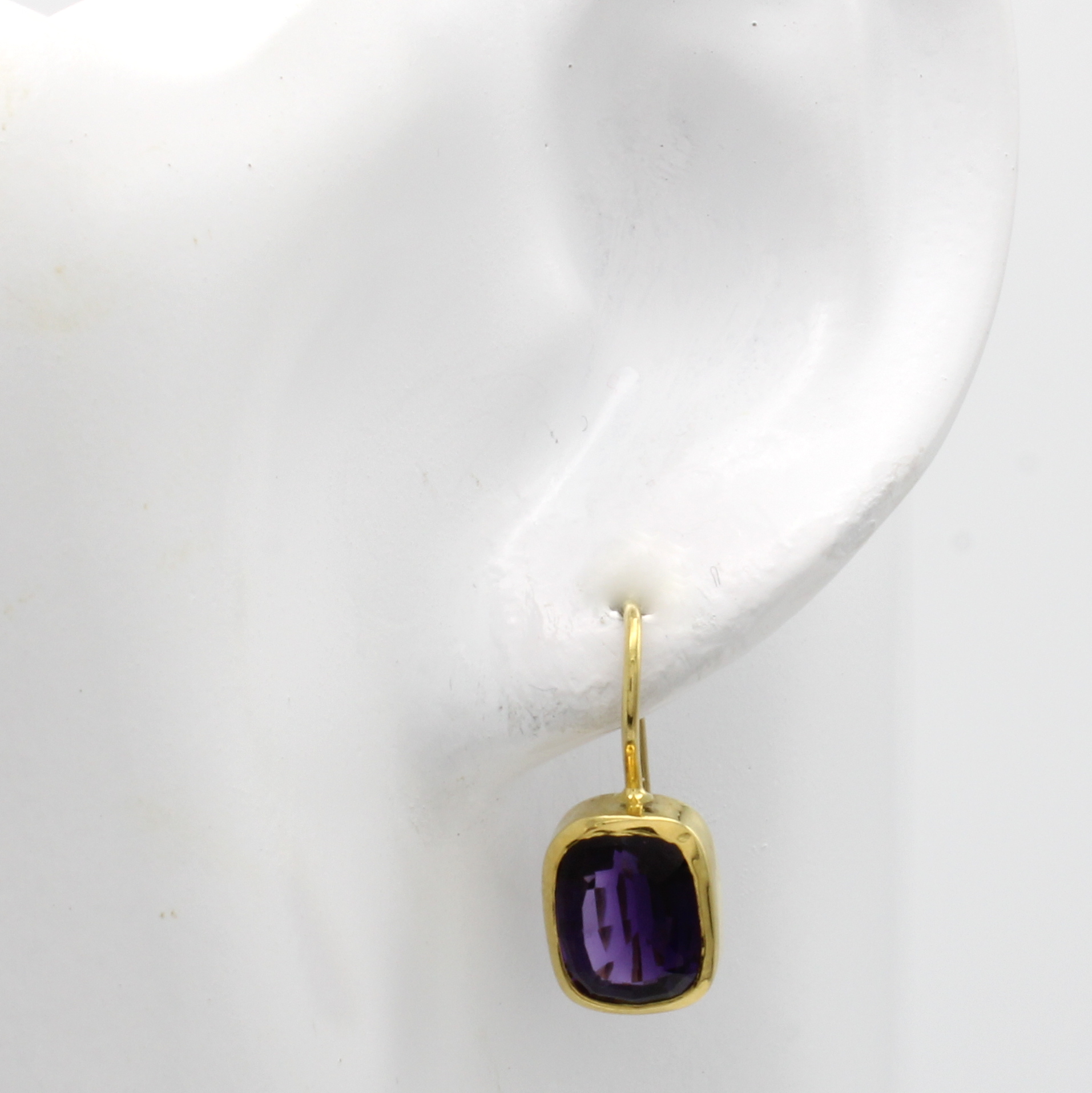 Paar Ohrhaken mit Amethysten, GG 585/000, 2 Amethyste in glatten Fassungen zus. ca. 8.5 ct Schätzpreis: 1290, - EUR
