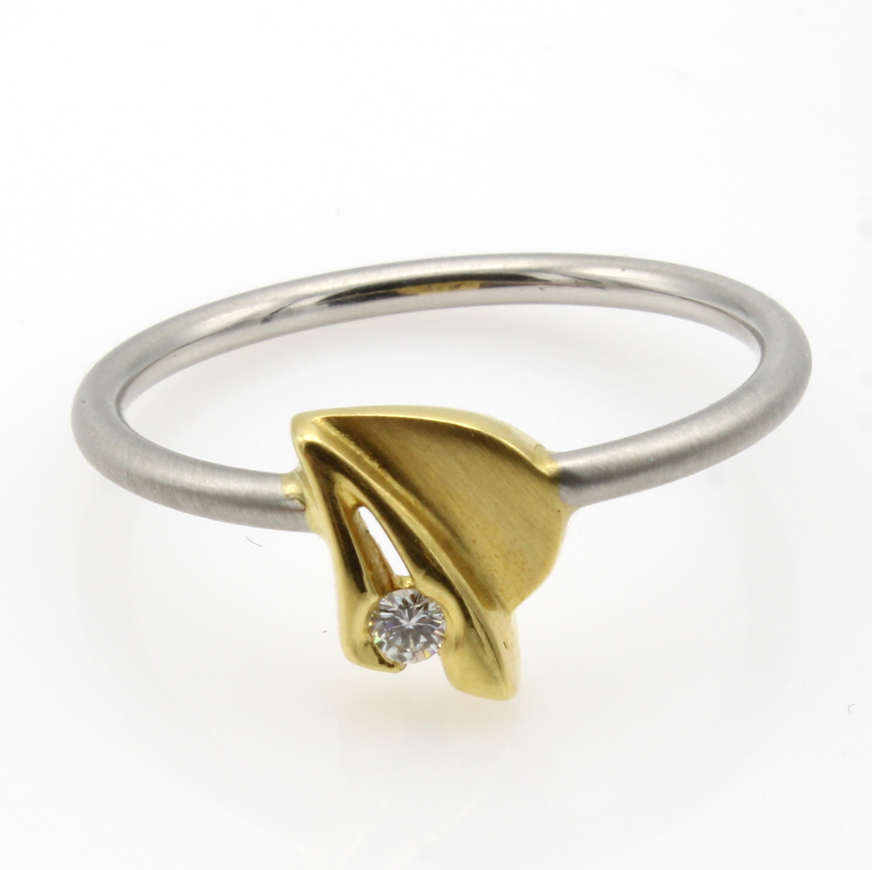 Ring mit Brillant, Platin 950/000 u. GG , z.T. matt., Brill. ca. 0.03 ct Weiß/vsi, RW ca. 53+ Schätzpreis: 600, - EUR