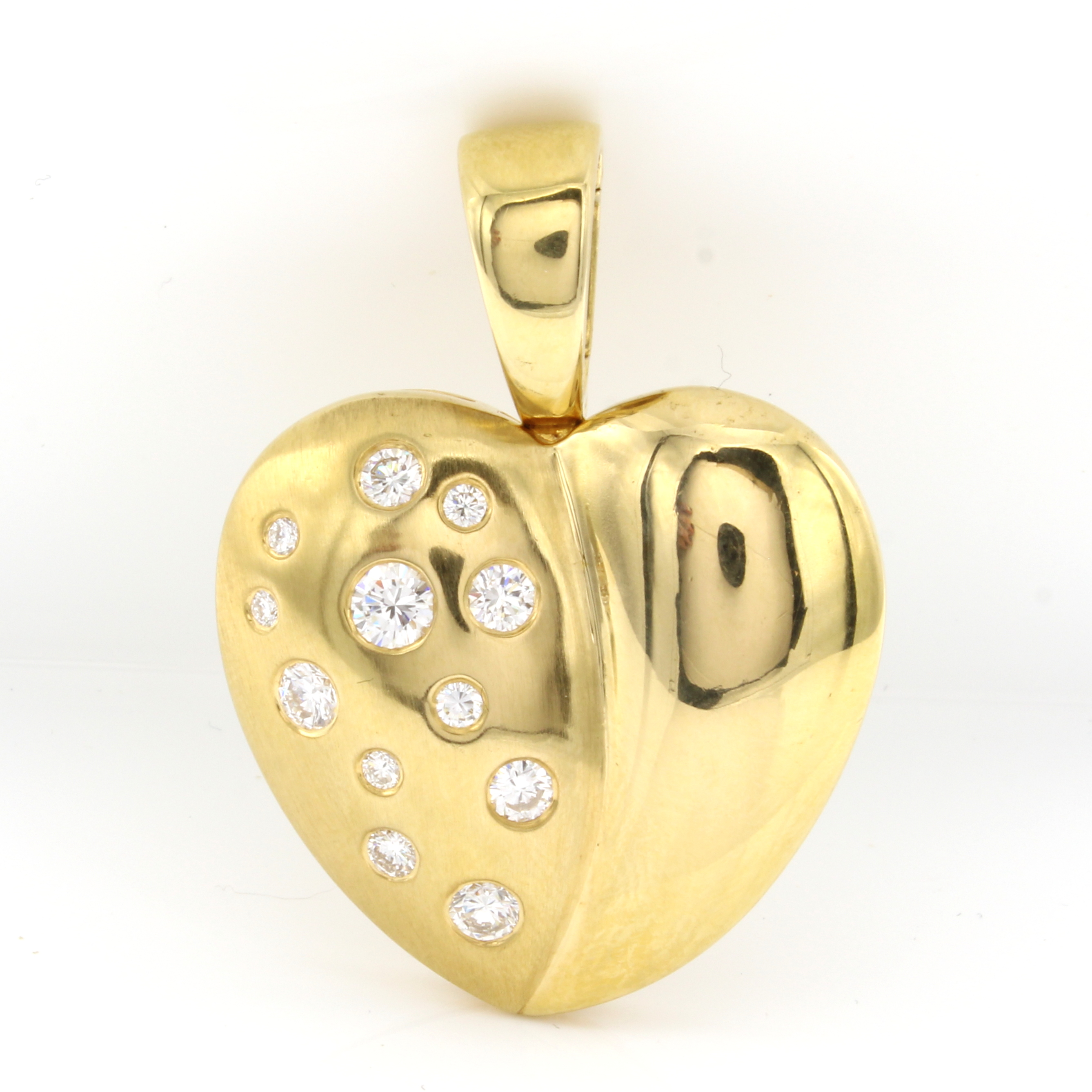 Clip-Anhänger "Herz" mit Brillanten, GG 750/000, 12 Brill. zus. ca. 1 ct feines Weiß/lu- penrein, Maße ca. 2.9x3 cm (ohne Öse) Schätzpreis: 5400, - EUR
