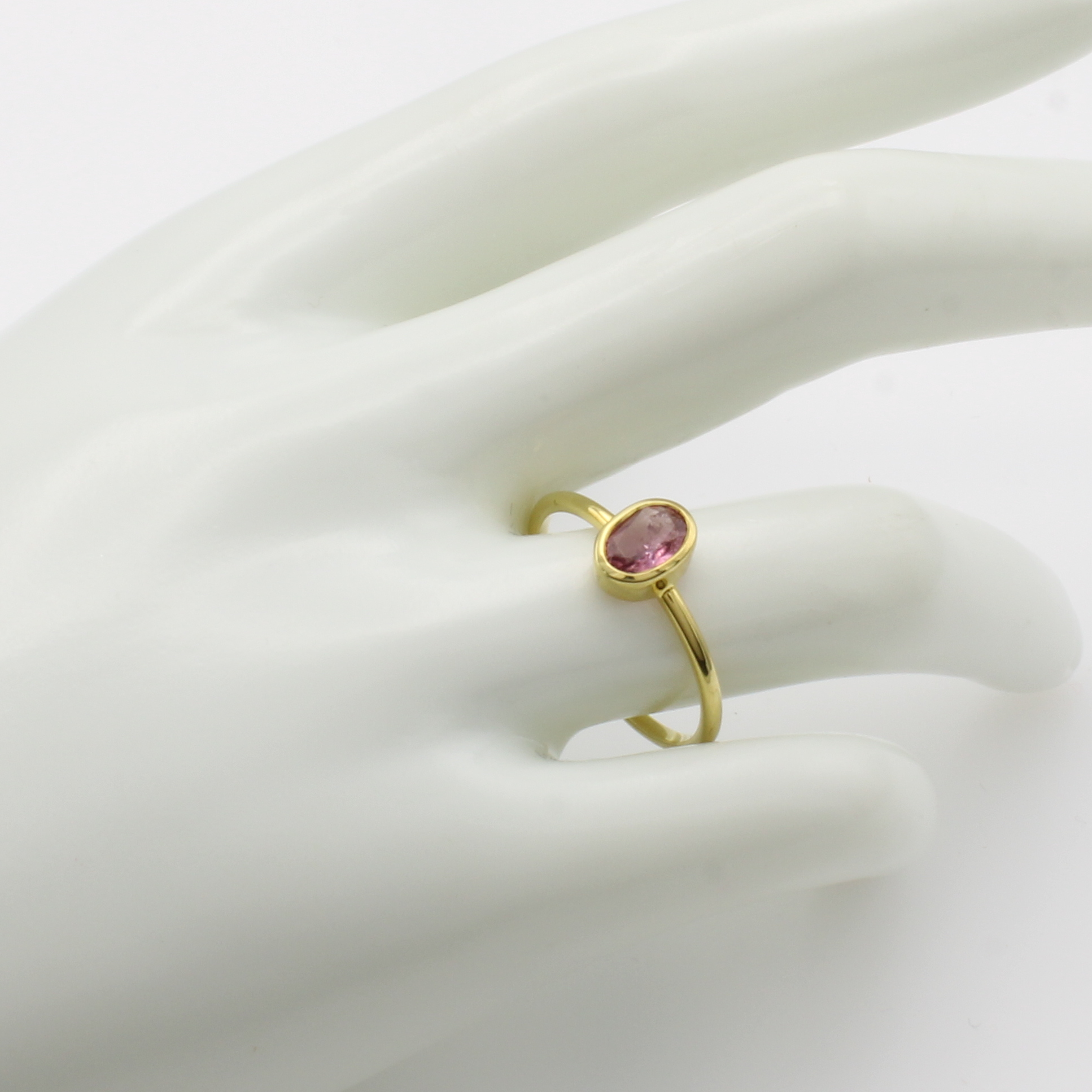 Ring mit Turmalin, GG 585/000, ovaler, rosa Turmalin in Zargenfassung ca. 0.7 ct, RW ca. 59 Schätzpreis: 860, - EUR