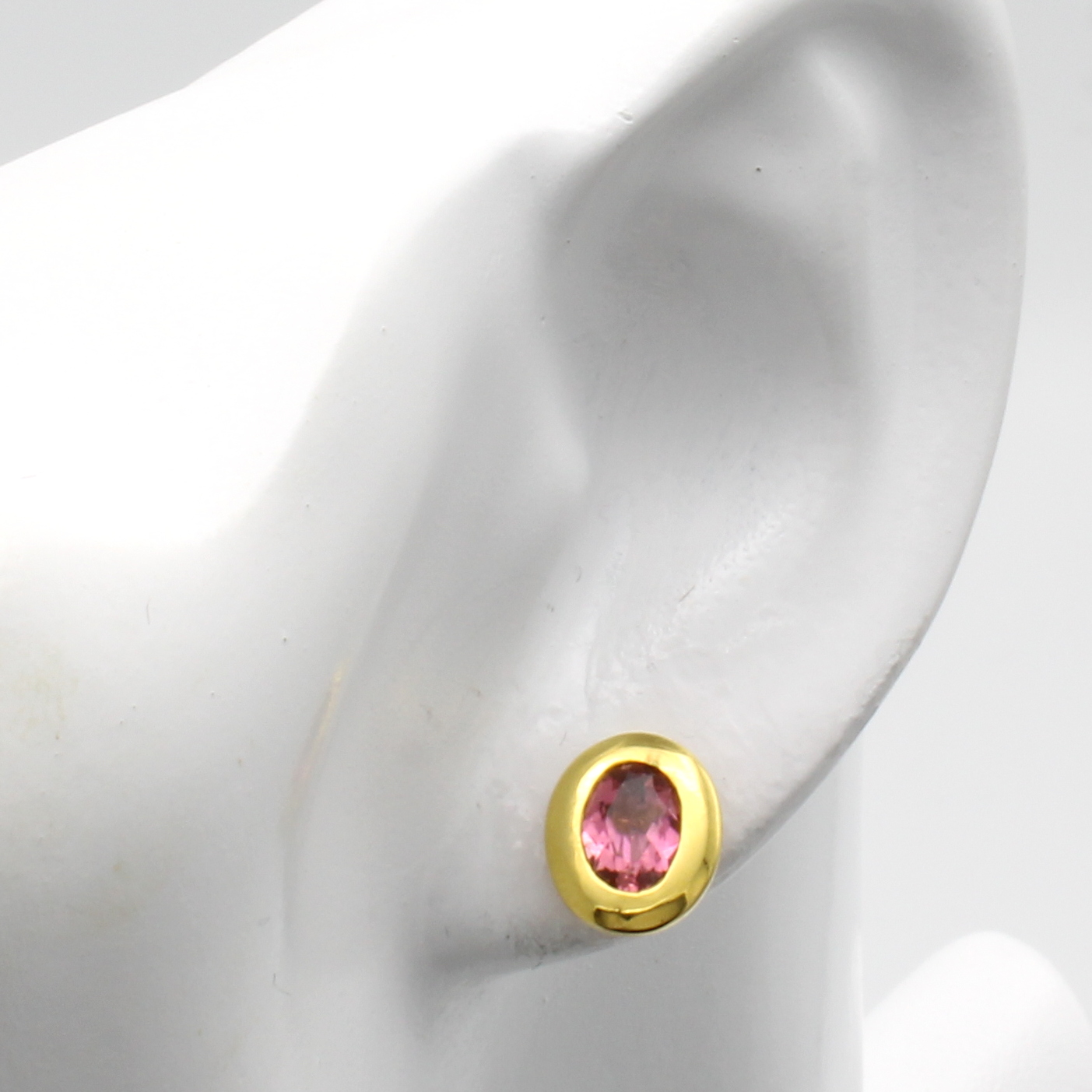 Paar Ohrstecker mit Turmalinen, GG 585/000, 2 ovale, rosa Turmaline in breiten, glatten Fassungen zus. ca. 1.4 ct Schätzpreis: 1300, - EUR