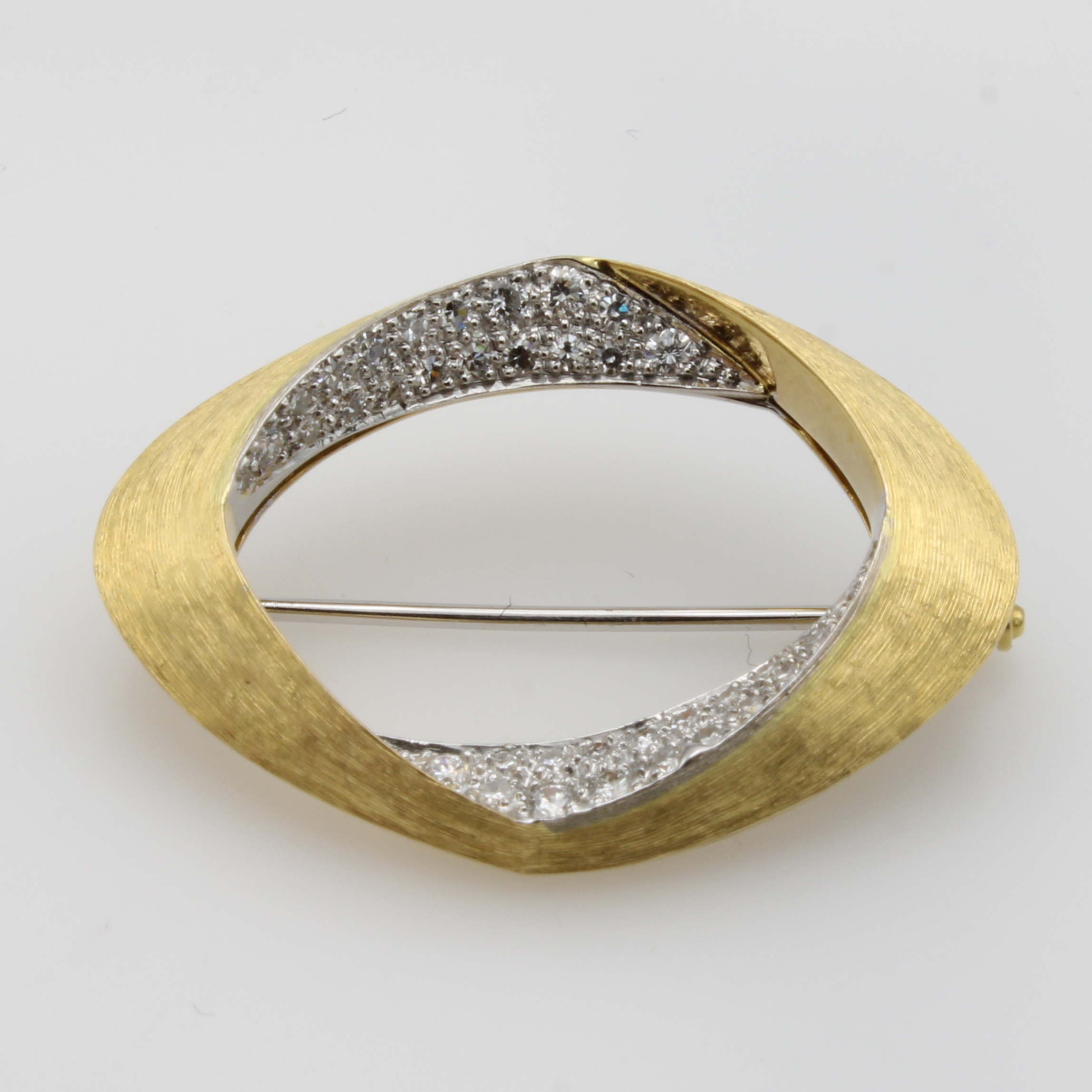 Brosche mit Brillanten "Behner", GG/WG 750/ 000, z.T. matt., 38 Brill. zus. ca. 0.60 ct feines Weiß/lupenrein Schätzpreis: 4200, - EUR