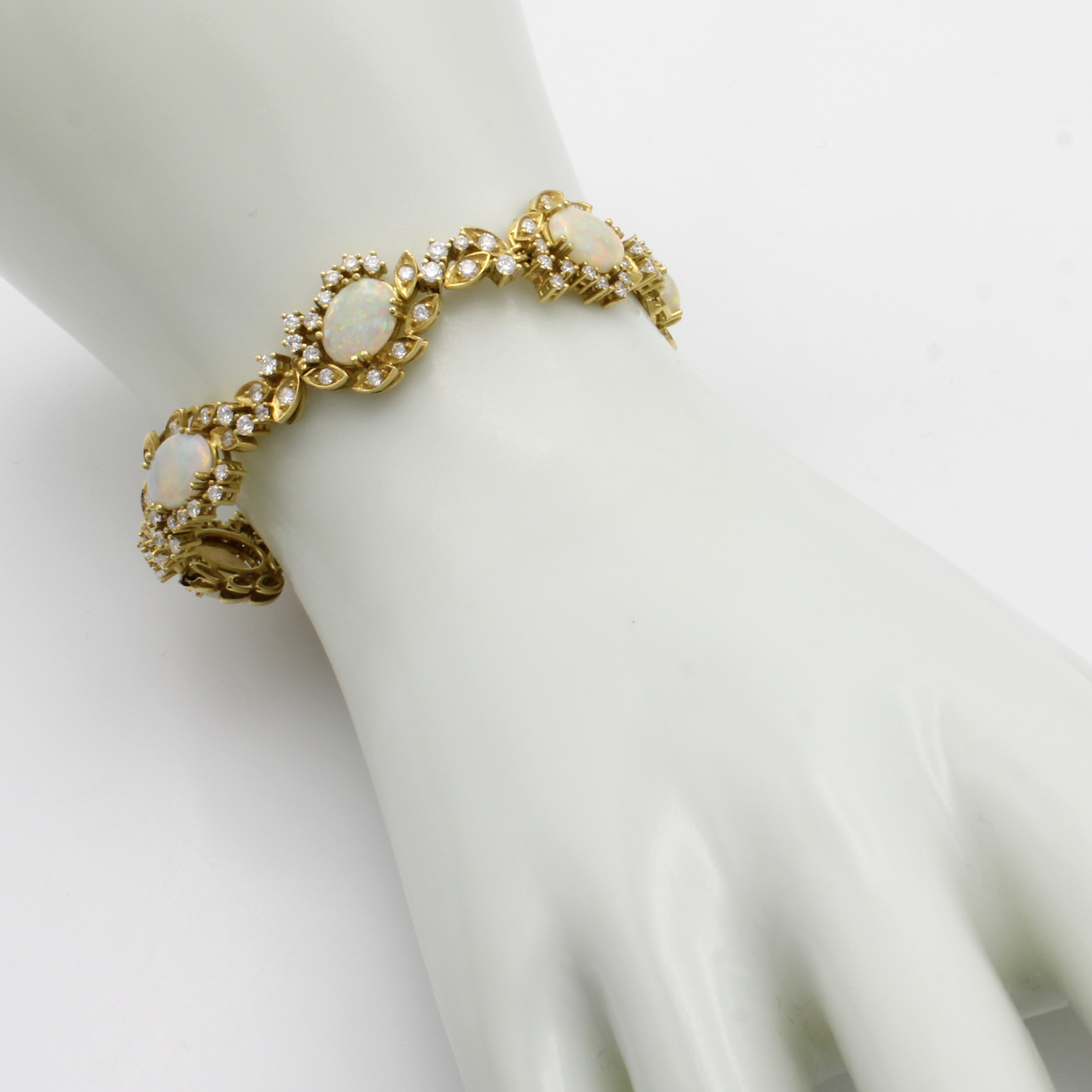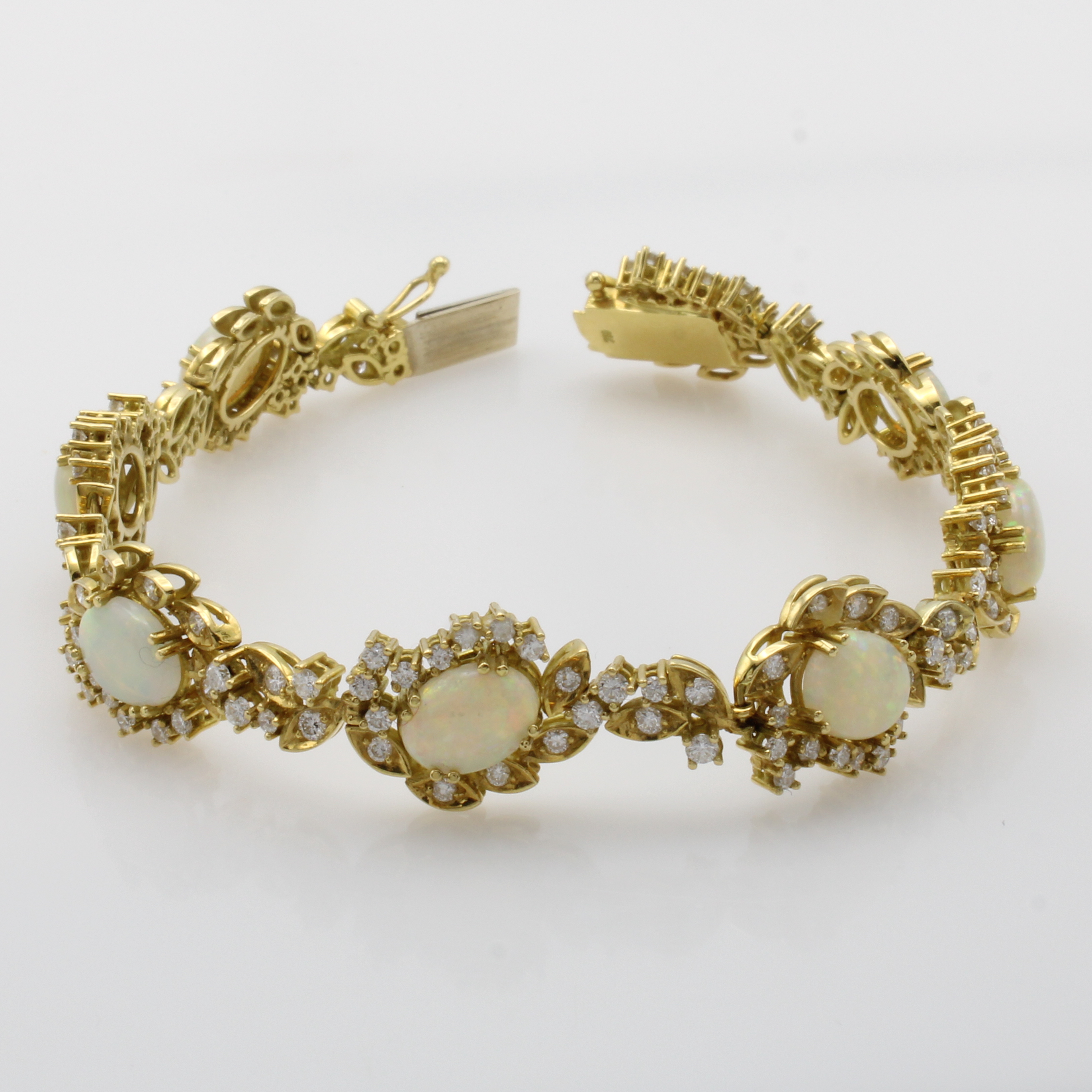 Armband mit Opalen und Brillanten, GG 750/ 000, ovale Opale zus. ca. 9.49 ct, Brill.