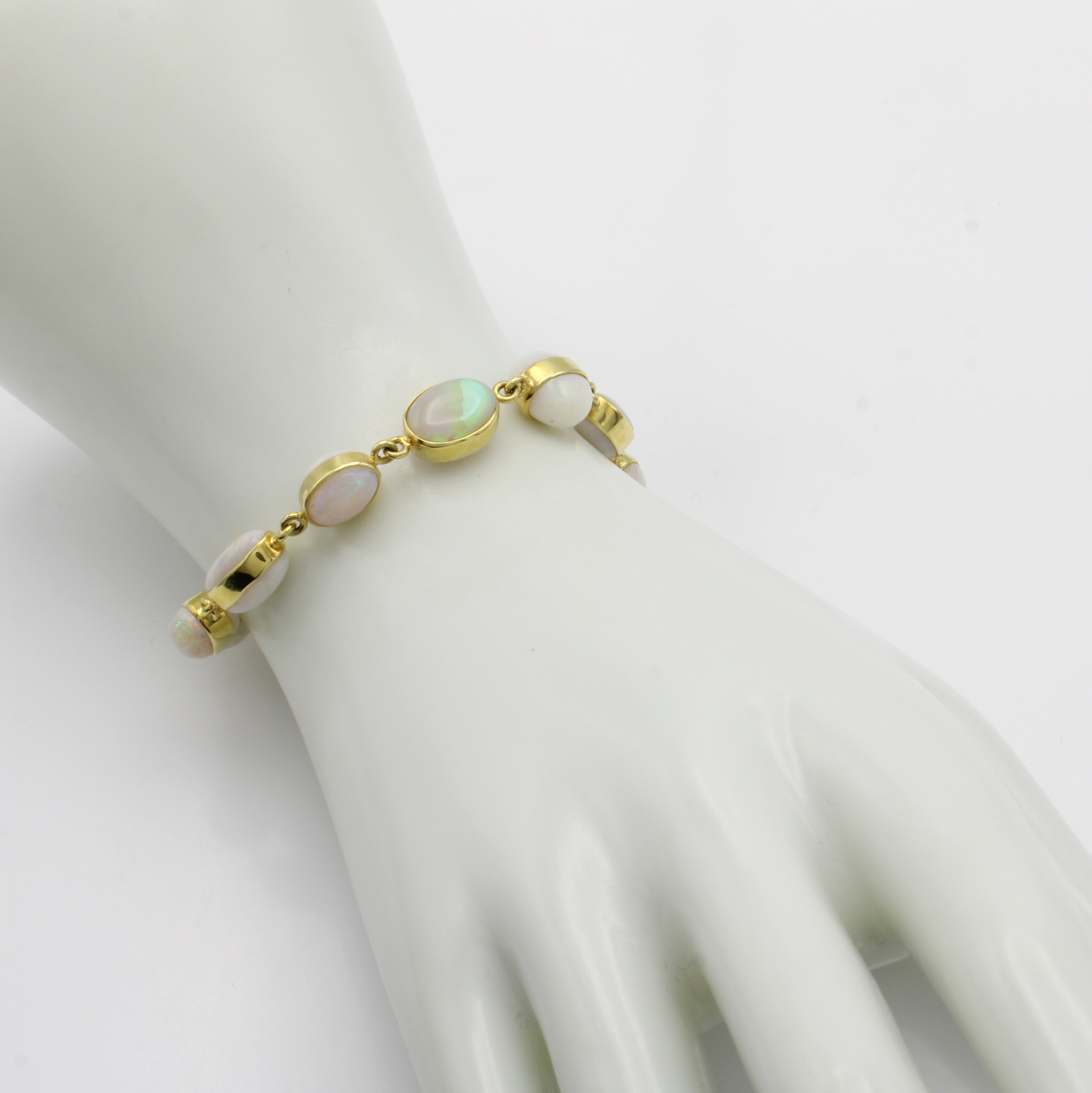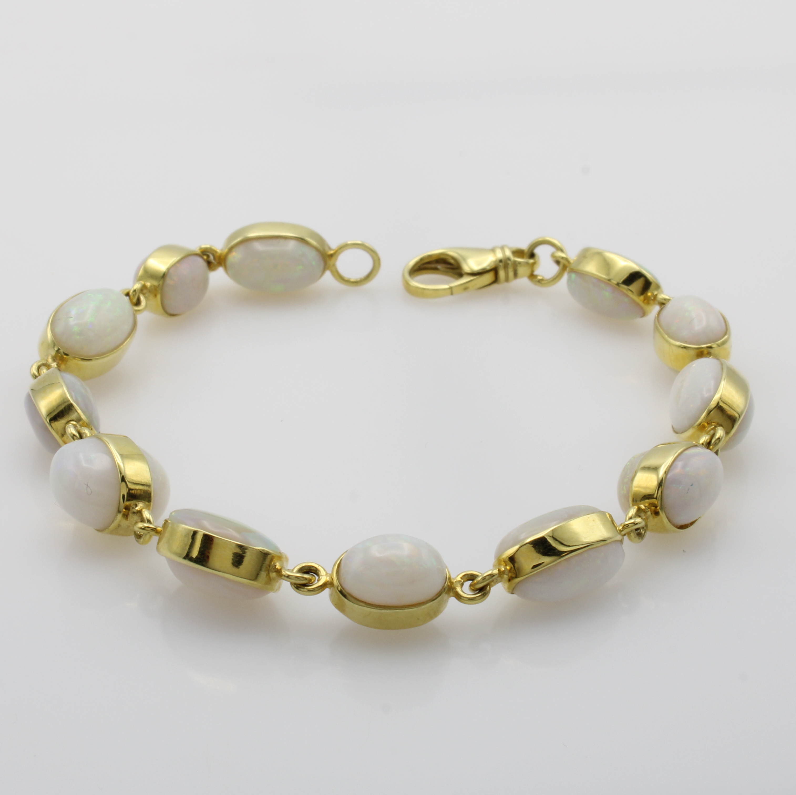 Armband mit Opalen, GG 585/000, ovale Opale zus. ca. 32.5 ct, Karabinerschl., L. ca. 21 cm Schätzpreis: 6500, - EUR