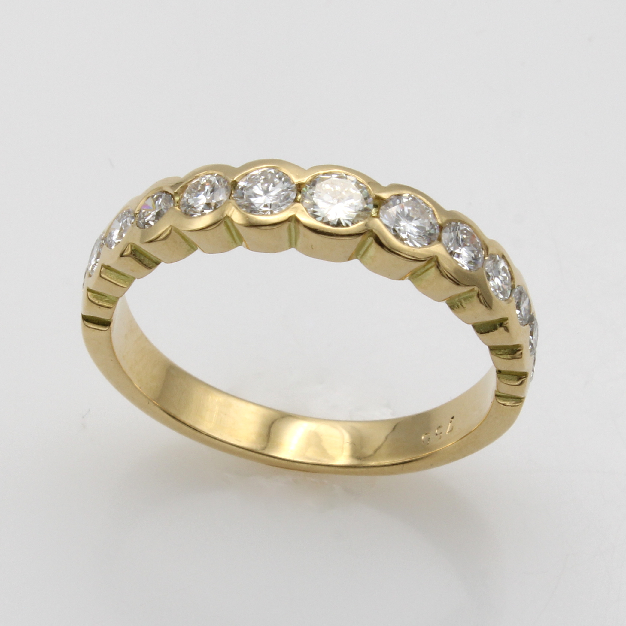 Ring mit Brillanten, GG 750/000, 13 Brill. im Verlauf zus. ca. 0.80 ct feines Weiß/vs-si, RW ca. 58 Schätzpreis: 4900, - EUR