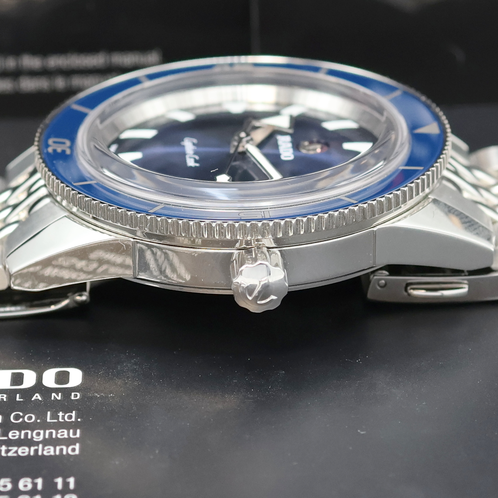 m. 60er Teilung eins. rast. drehb., blaues Zifferbl. m. aufgel. Indizes, Anz. v.