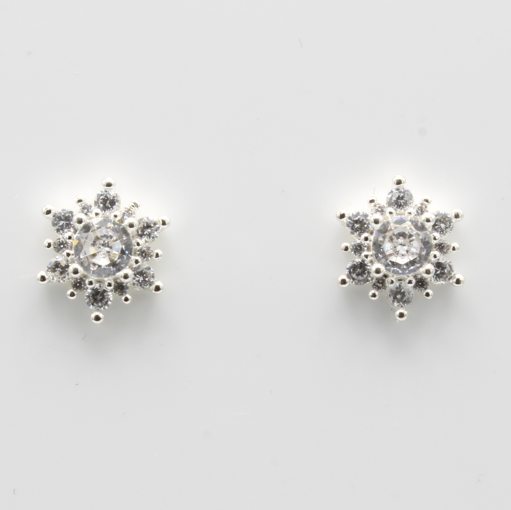 Paar Ohrstecker mit Zirkonias, 925er Silber in Sternform
