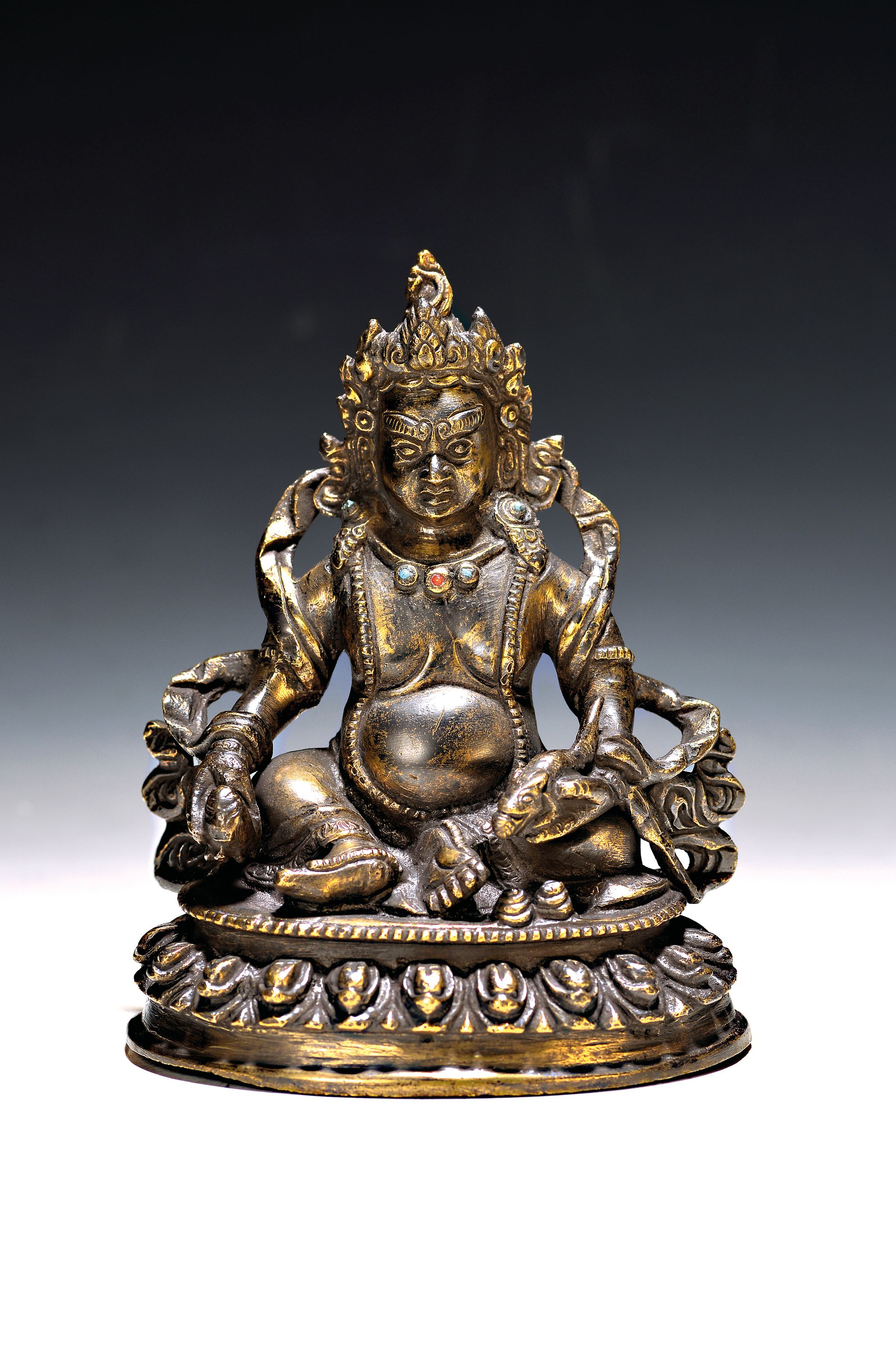 Bronzefigur, Mahakala, Mongolei, mit roten und blauen Glassteinen, H. ca. 15 cm,