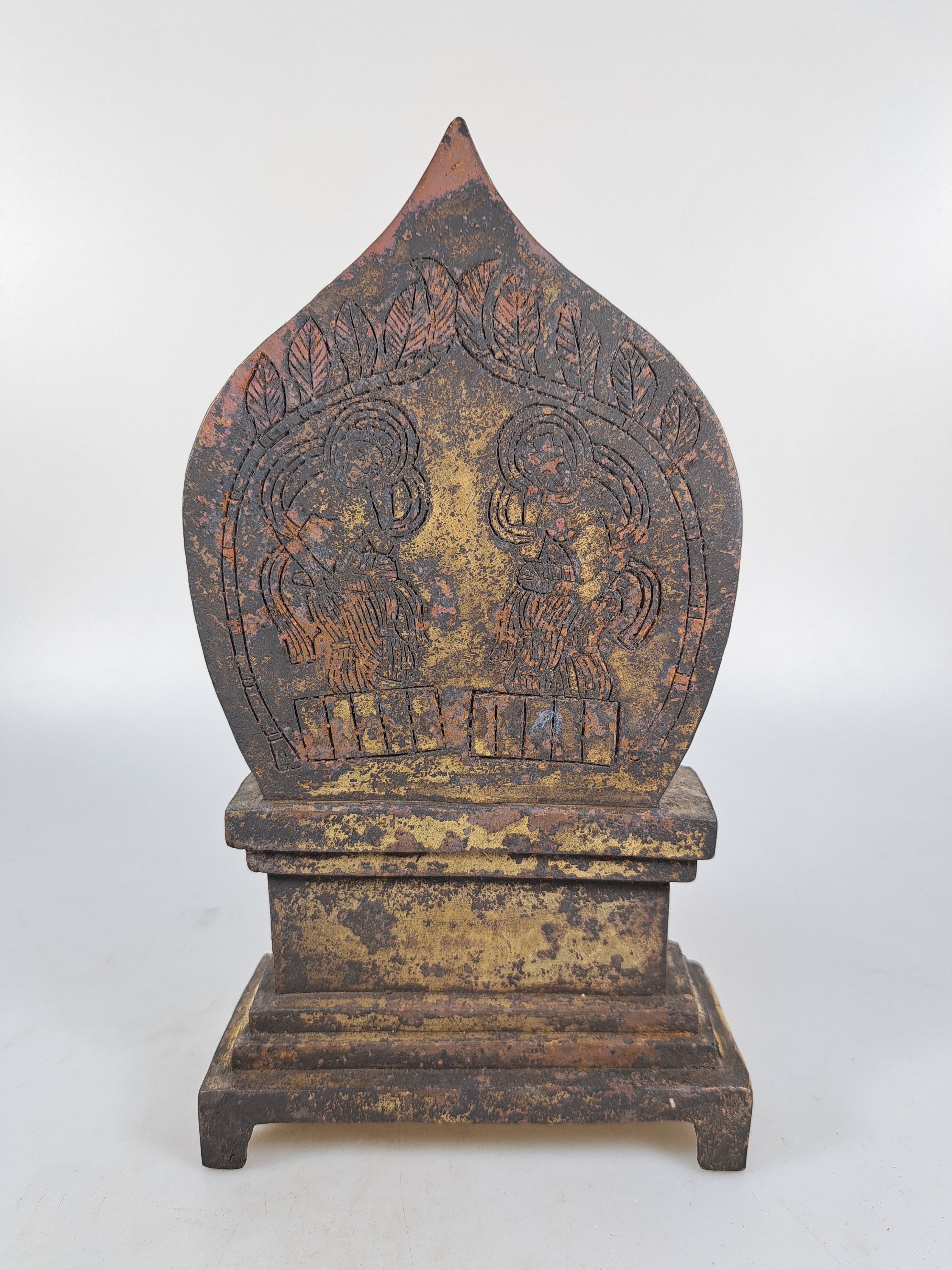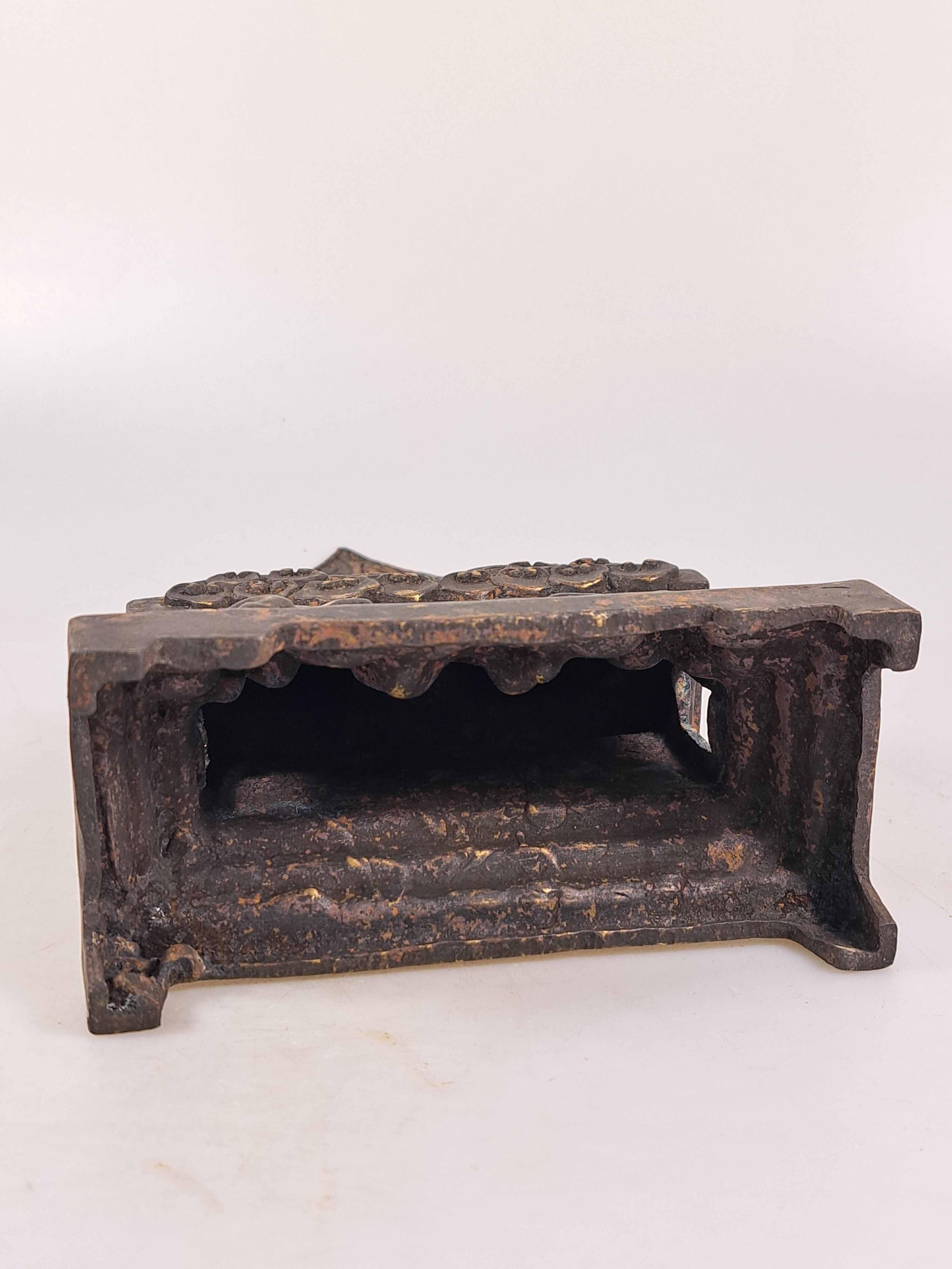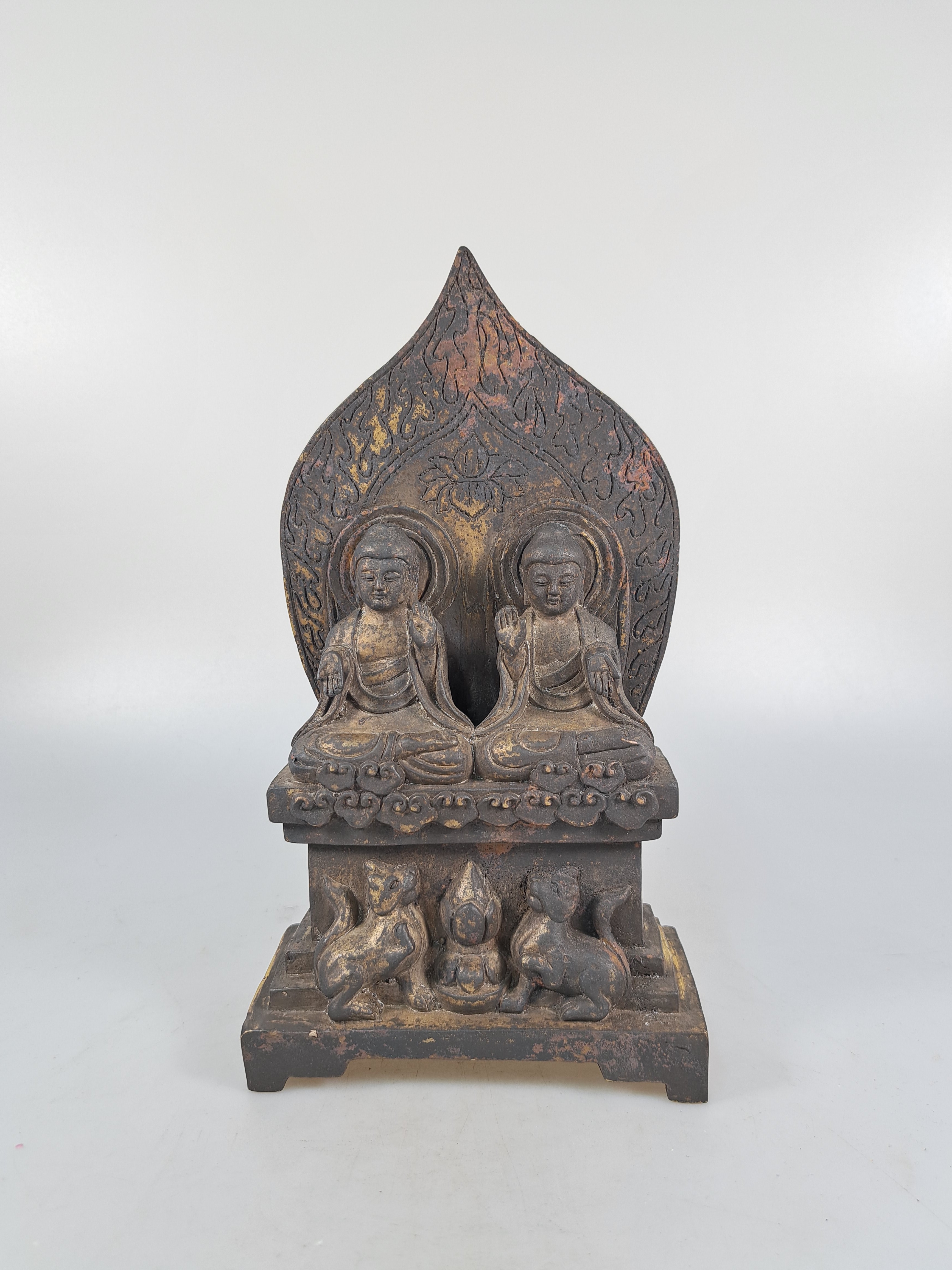 Bronzefigur, Buddhagruppe/zwei Buddhas, Mongolei, 20. Jh., zwei sitzende Buddhas auf gemeinsamen Thron, ca. 23x12.5 cm