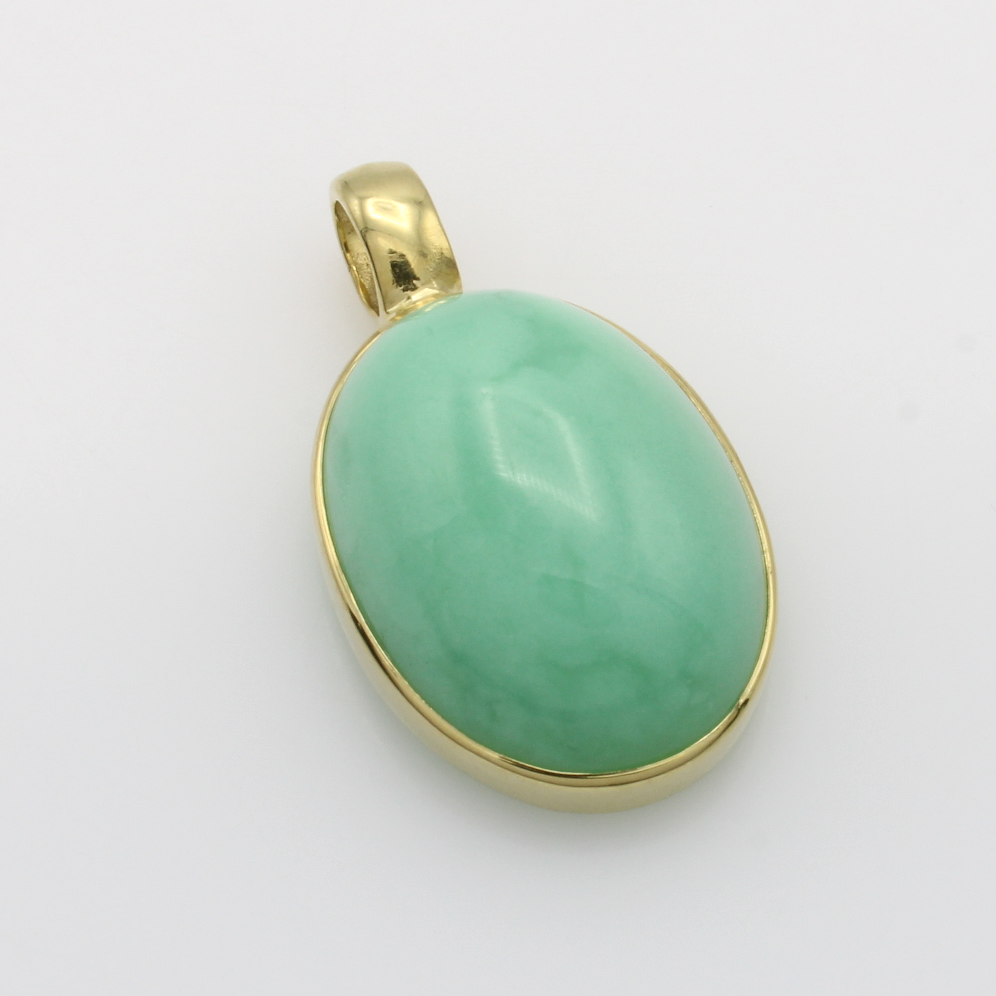 Anhänger mit Chrysopras, GG 585/000, ovaler Chrysopras in glatter Fassung ca. 17.5 ct Schätzpreis: 980, - EUR