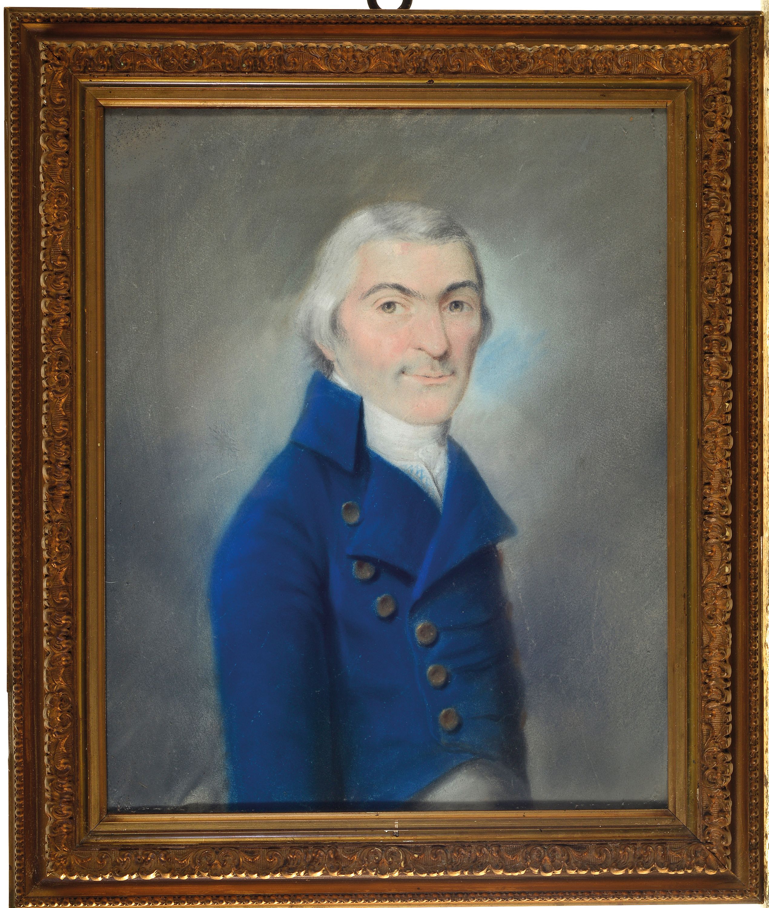 Paar Biedermeier Porträts, deutsch, um 1820-30, Herr im blauen Rock, Frau mit weißer