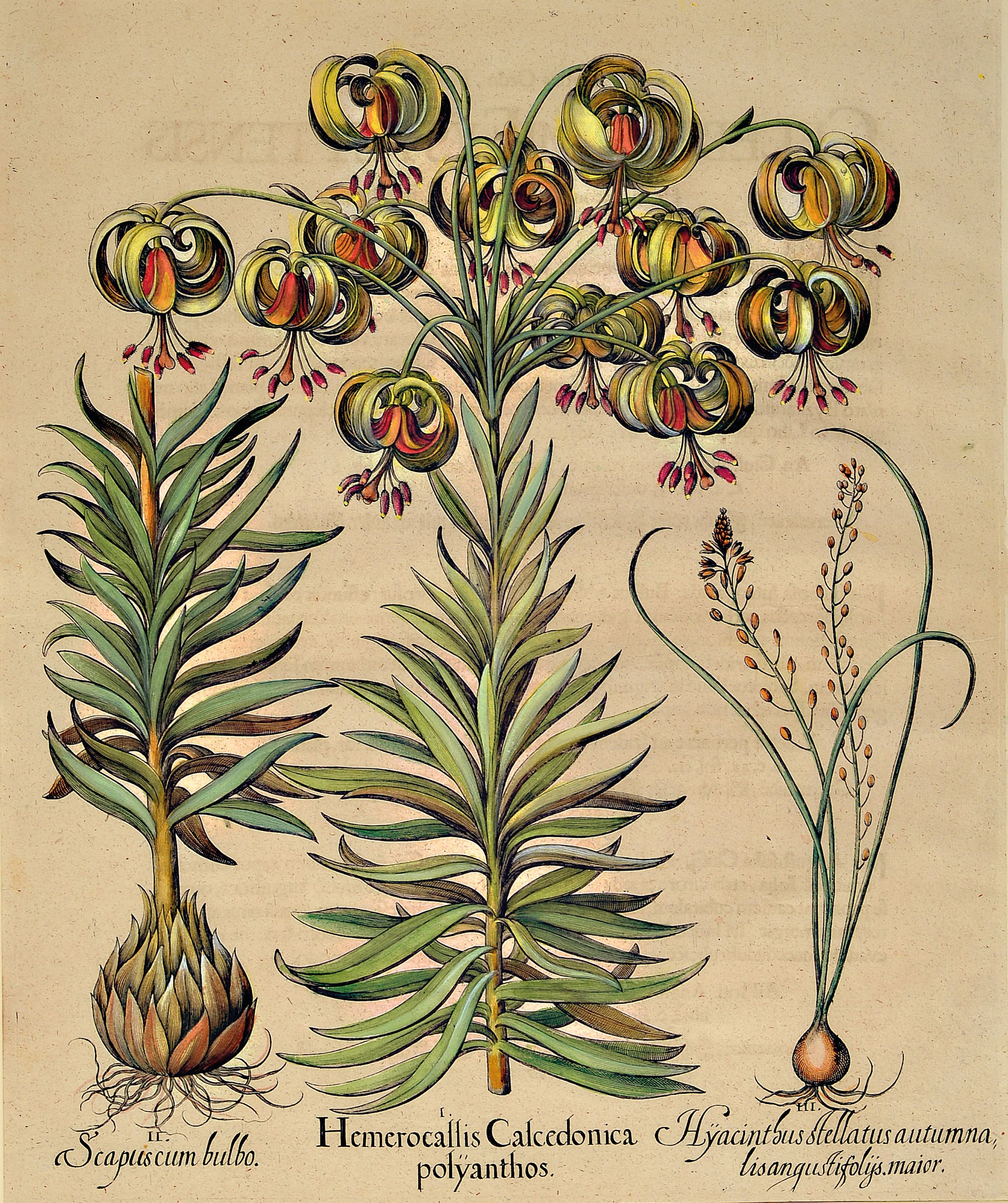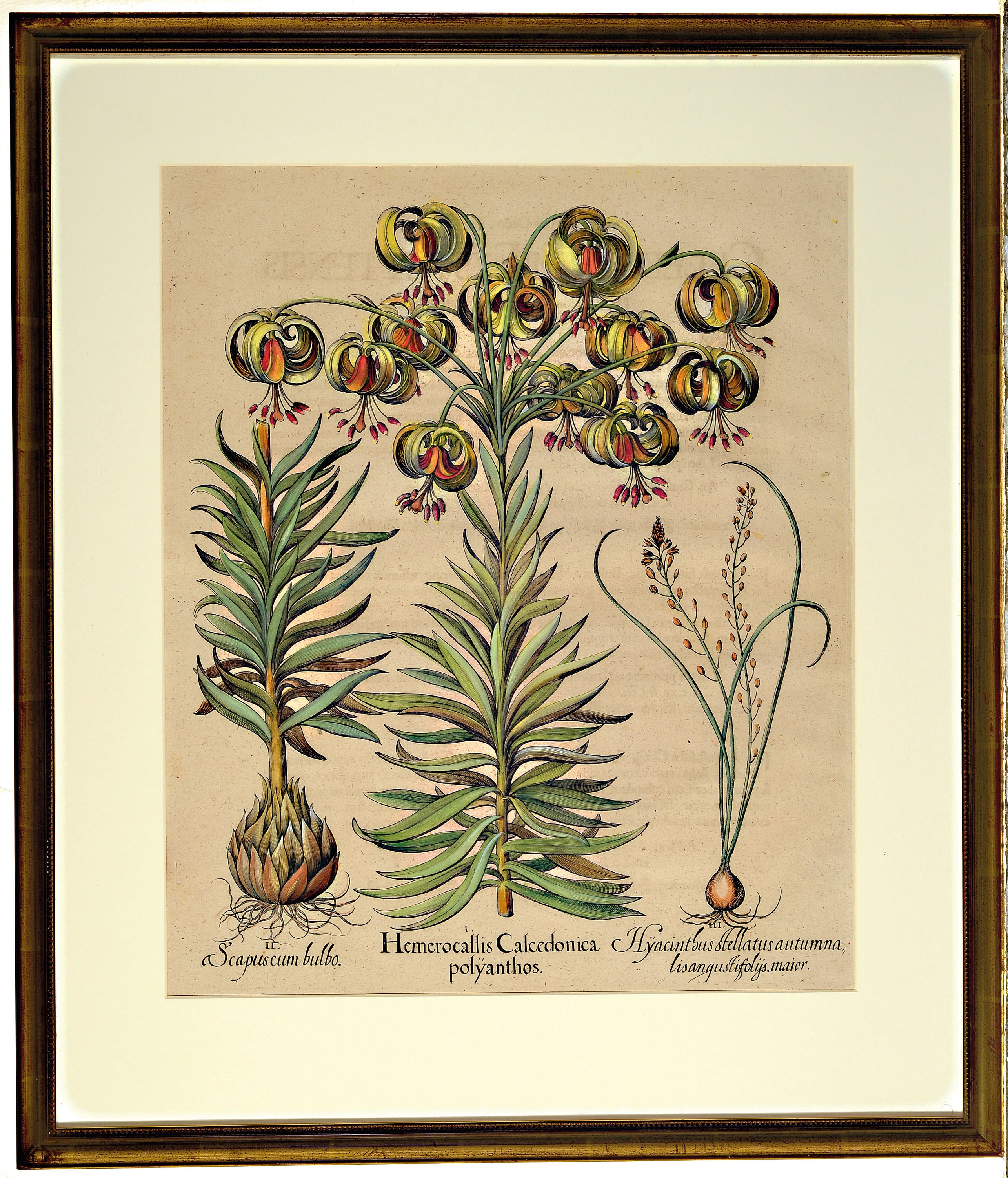 und "Hemerocallis Calcedonica", Druckplatte 48,8x39,7 cm, unter PP und Glas gerahmt