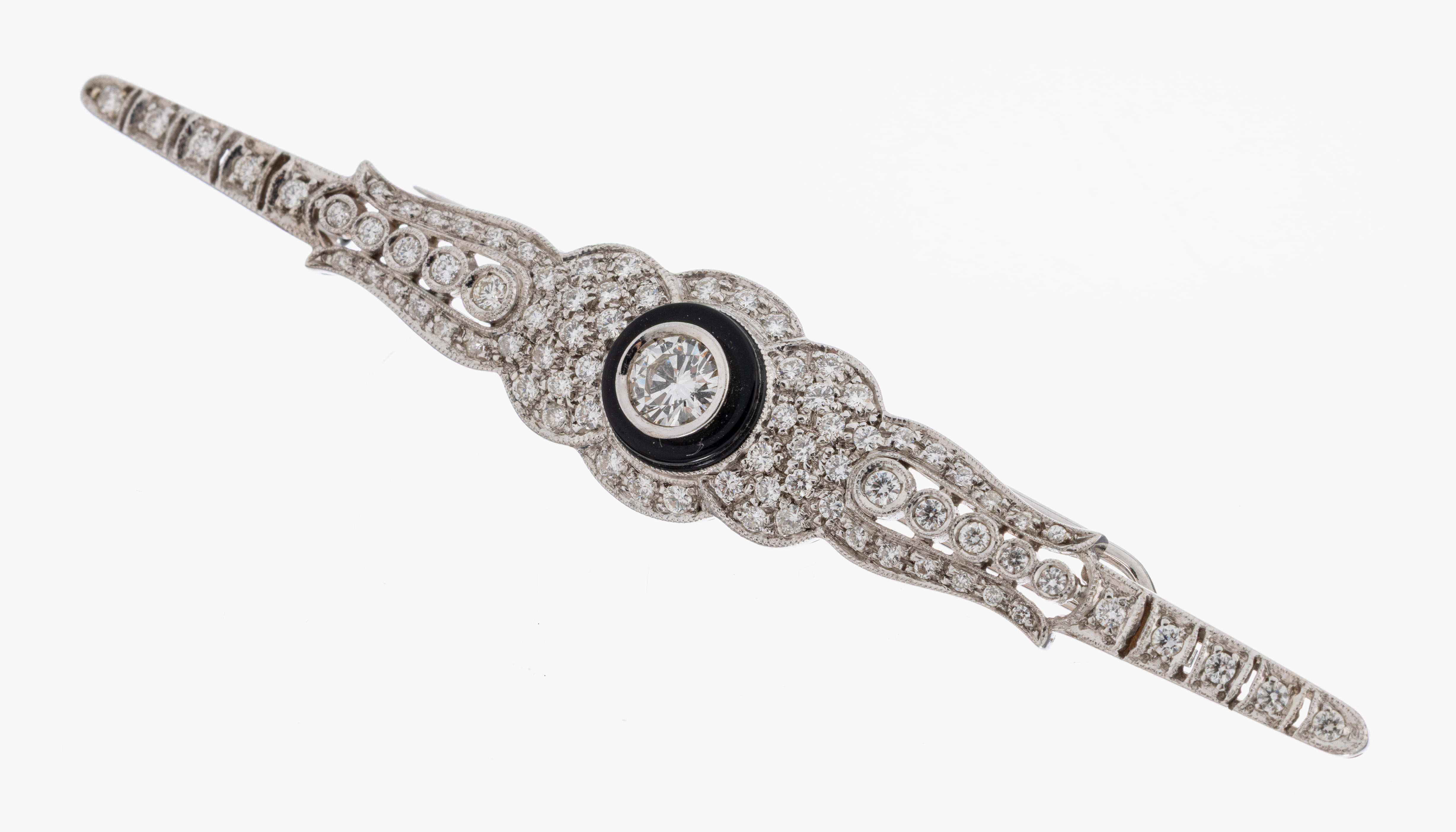 18 kt Gold Brillant-Brosche, WG 750/000, imArt Deco Stil, 1 Brillant ca. 0.35 ct