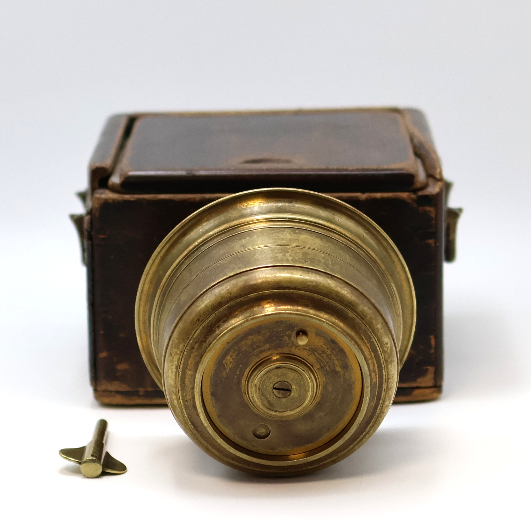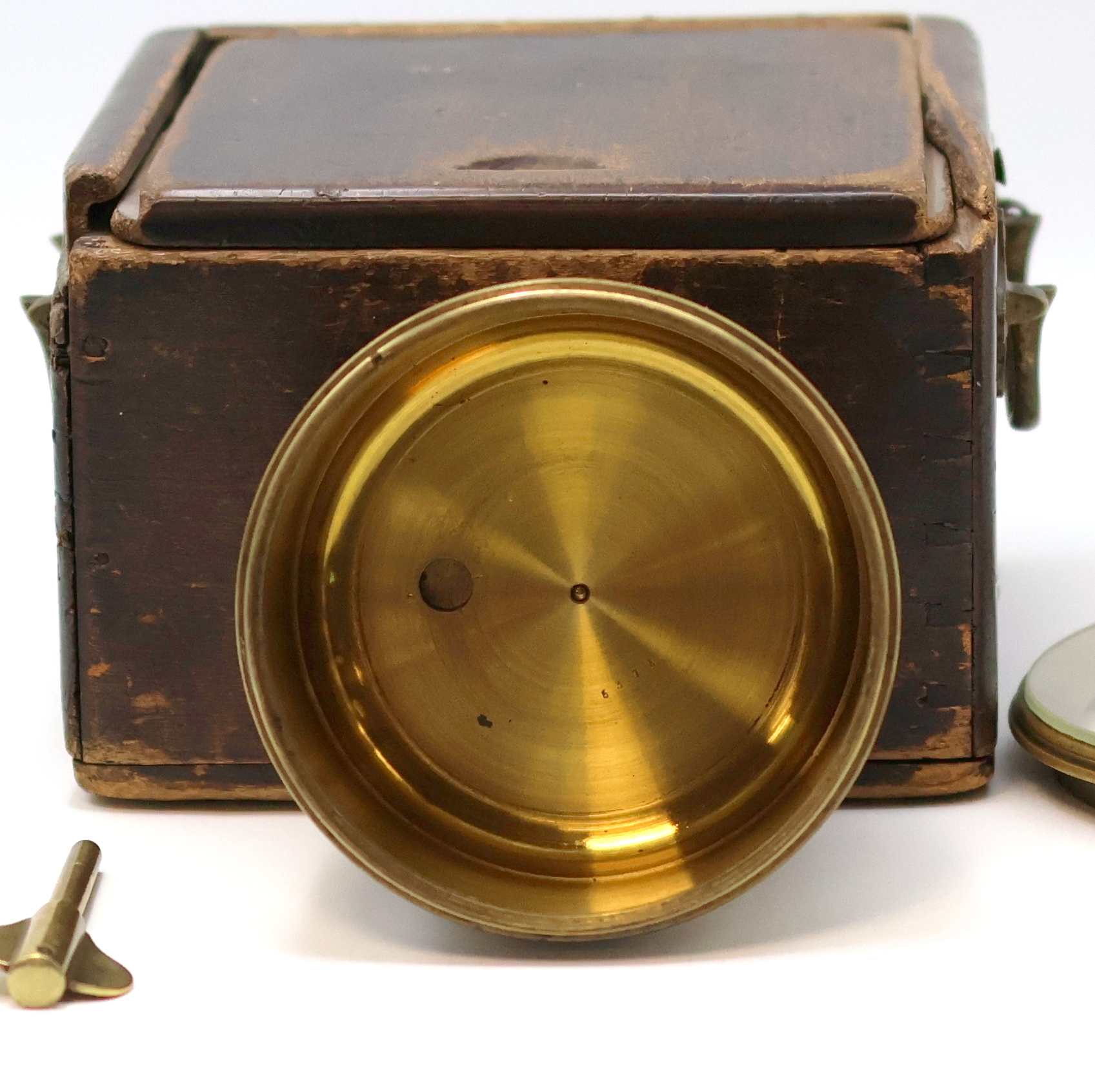 England um 1880, Messinggeh., über vergl. Lünette verschr., Holzkasten m. eingeschobenem