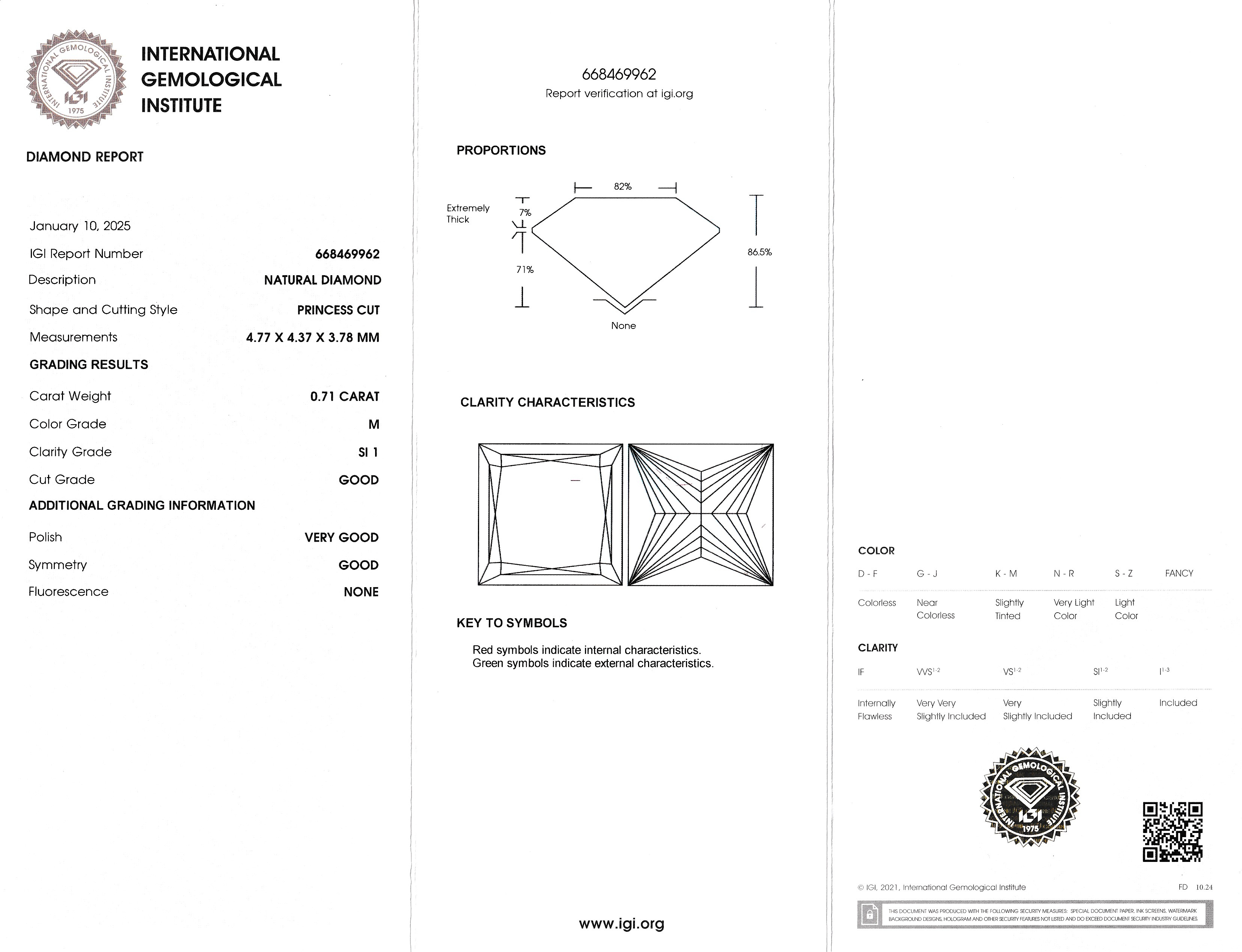 Loser Princess Cut Diamant, 0.71 ct Getönt (M)/si1, eingeschweißt, IGI-Expertise